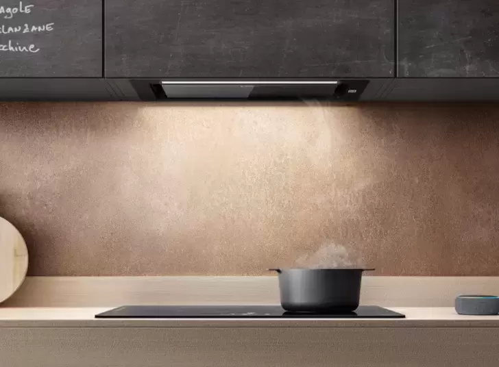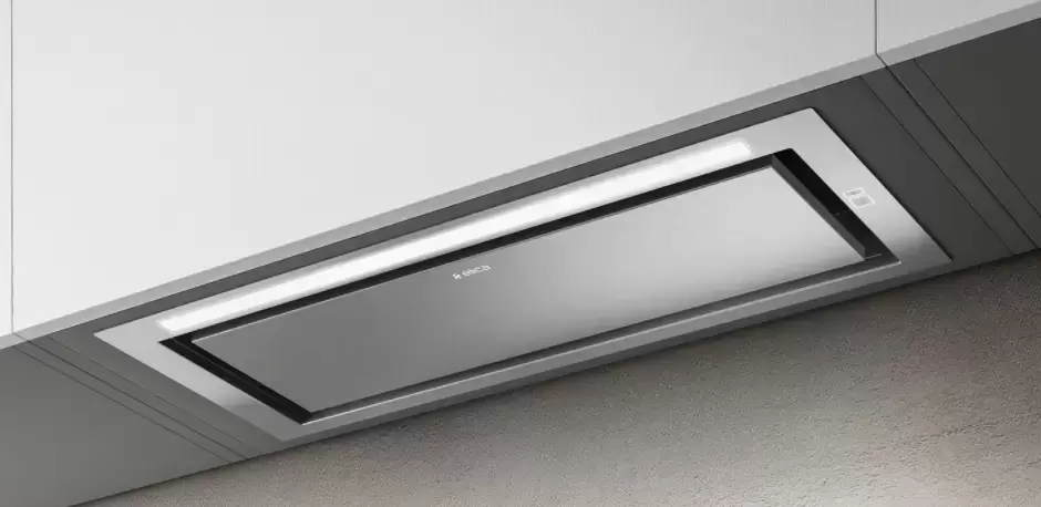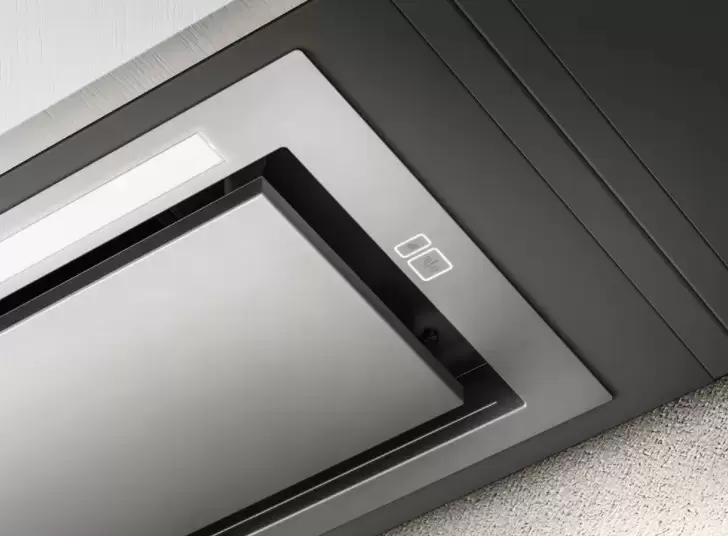 Встраиваемая вытяжка легко монтируется в навесной шкаф. Корпус модели скрывает фасад гарнитура, видимой остается только нижняя часть, в которую попадает загрязненный воздух. Для качественной и эффективной очистки предусмотрены три скорости, интенсивный режим и два вида фильтров: жироулавливающий и угольный. Второй необходим при работе вытяжки в режиме рециркуляции, когда воздух не отводится в вентиляцию, а очищается и возвращается обратно. Энергоэффективная и экономичная светодиодная лампа хорошо освещает рабочую зону, что повышает удобство при приготовлении или нахождении на кухне.