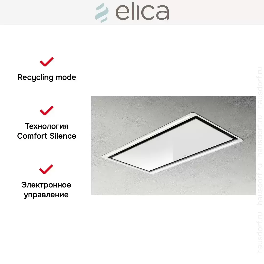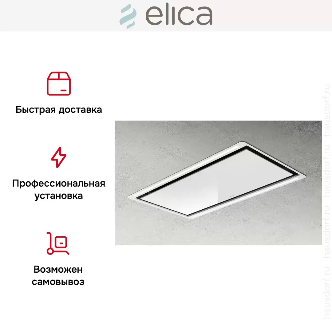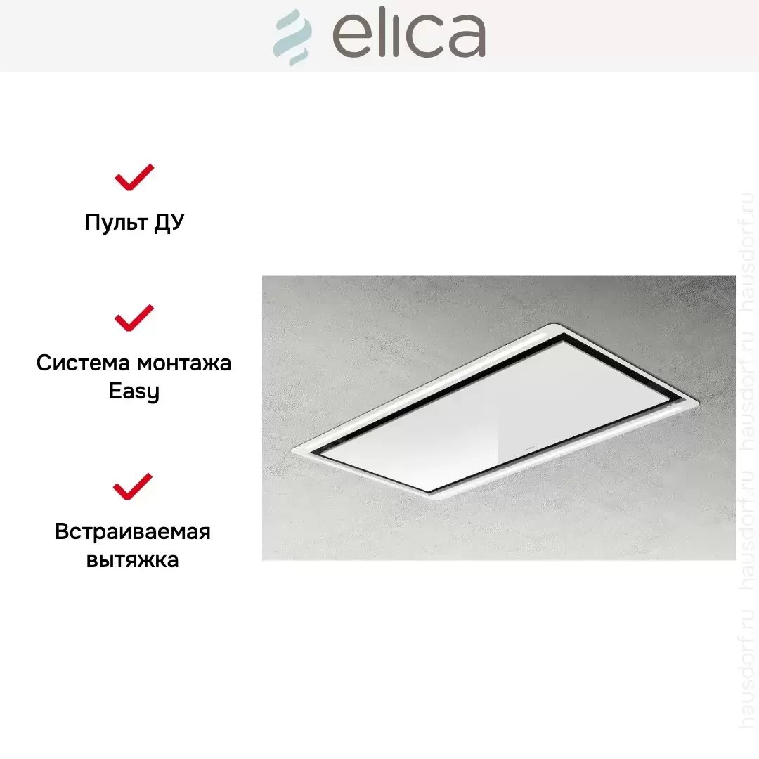 Встраиваемая вытяжка — выбор тех, кто хочет максимально задекорировать технику, или владельцев маленькой кухни. Тип встраивания: потолочный. Обратите внимание на цветовые сочетания модели Elica HILIGHT GLASS H30 WH/A/100, чтобы органично вписать ее в свою квартиру. Оттенок корпуса: белое стекло. Благодаря лампочкам, которые расположены на нем, можно освещать плиту и столешницу рядом, чтобы готовить было еще проще и приятнее.