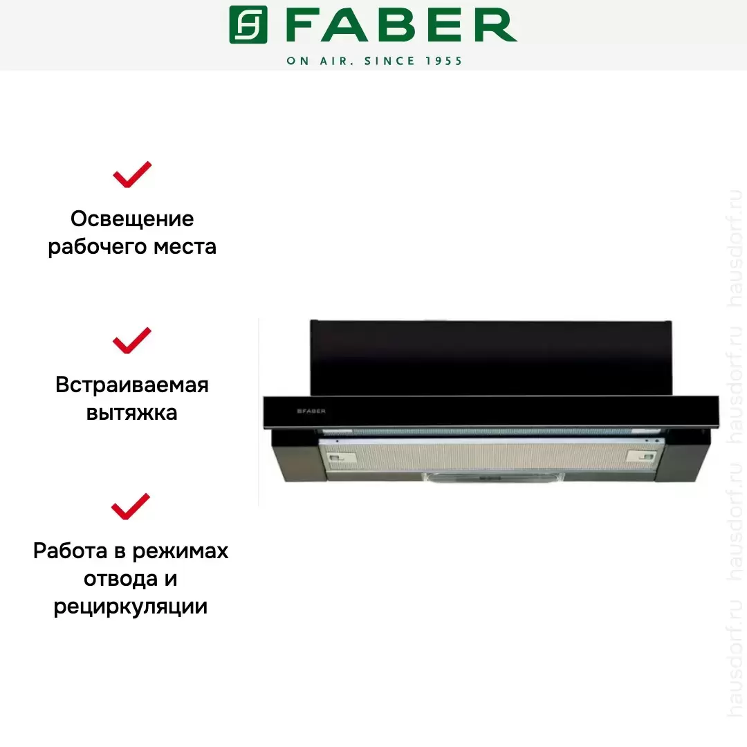Изделие выполнено из качественных и современных материалов. Поверхность отличается легкостью в уходе. Вытяжка встраивается в навесной шкаф, поэтому остается практически не заметной в интерьере, поэтому подойдет для установки в кухни любого стиля. На модель распространяется официальная гарантия от производителя. Среди преимуществ: электромеханическое управление, 2 скорости, галогенная лампа.