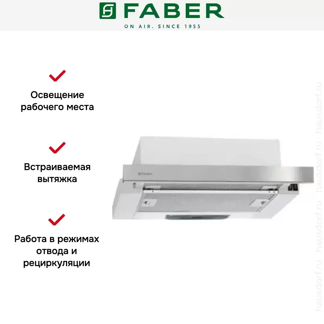 Встраиваемая вытяжка — выбор тех, кто хочет максимально задекорировать технику, или владельцев маленькой кухни. Тип встраивания: в шкаф. Обратите внимание на цветовые сочетания модели Faber FLOX IX A45, чтобы органично вписать ее в свою квартиру. Оттенок корпуса: нержавеющая сталь. Благодаря лампочкам, которые расположены на нем, можно освещать плиту и столешницу рядом, чтобы готовить было еще проще и приятнее. Фишка этой техники — выдвижная панель.