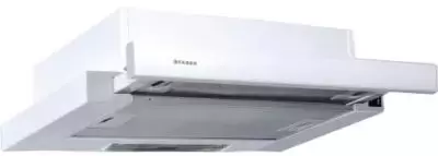 Вытяжка работает в режимах отвода и циркуляции, поэтому загрязнения удаляются из комнаты и перенаправляются в воздуховод, при этом можно очистить воздух и использовать повторно за счет возвращения его в помещение. Количество скоростей в этой модели: 2 шт. При этом максимальная производительность составляет 400 куб.м./ч. Уровень шума при полной загруженности — 55 дБ.