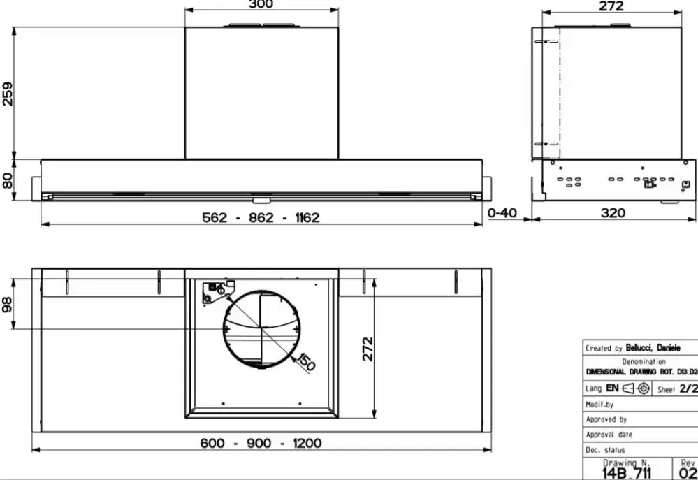 | Диаметр воздуховода (мм) | 150 | |