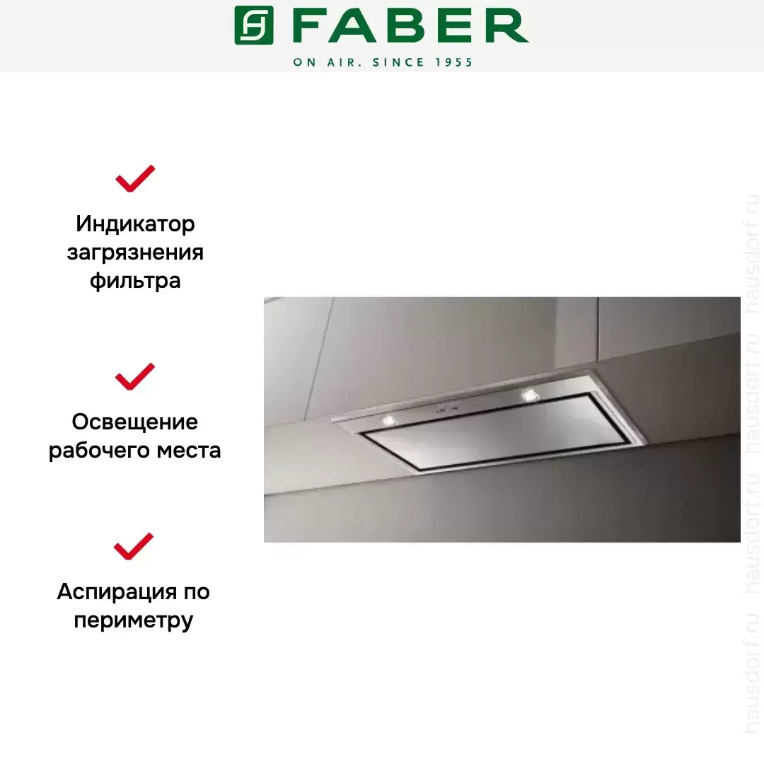 Встраиваемая вытяжка — выбор тех, кто хочет максимально задекорировать технику, или владельцев маленькой кухни. Тип встраивания: в шкаф. Обратите внимание на цветовые сочетания модели Faber VICTORY 2.0 X A77, чтобы органично вписать ее в свою квартиру. Оттенок корпуса: нержавеющая сталь. Благодаря лампочкам, которые расположены на нем, можно освещать плиту и столешницу рядом, чтобы готовить было еще проще и приятнее.