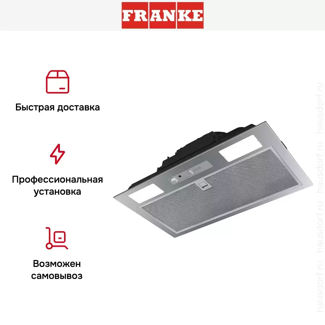 Встраиваемая вытяжка — выбор тех, кто хочет максимально задекорировать технику, или владельцев маленькой кухни. Тип встраивания: в шкаф. Обратите внимание на цветовые сочетания модели Franke Box FBI 525 XS, чтобы органично вписать ее в свою квартиру. Оттенок корпуса: нержавеющая сталь. Благодаря лампочкам, которые расположены на нем, можно освещать плиту и столешницу рядом, чтобы готовить было еще проще и приятнее.