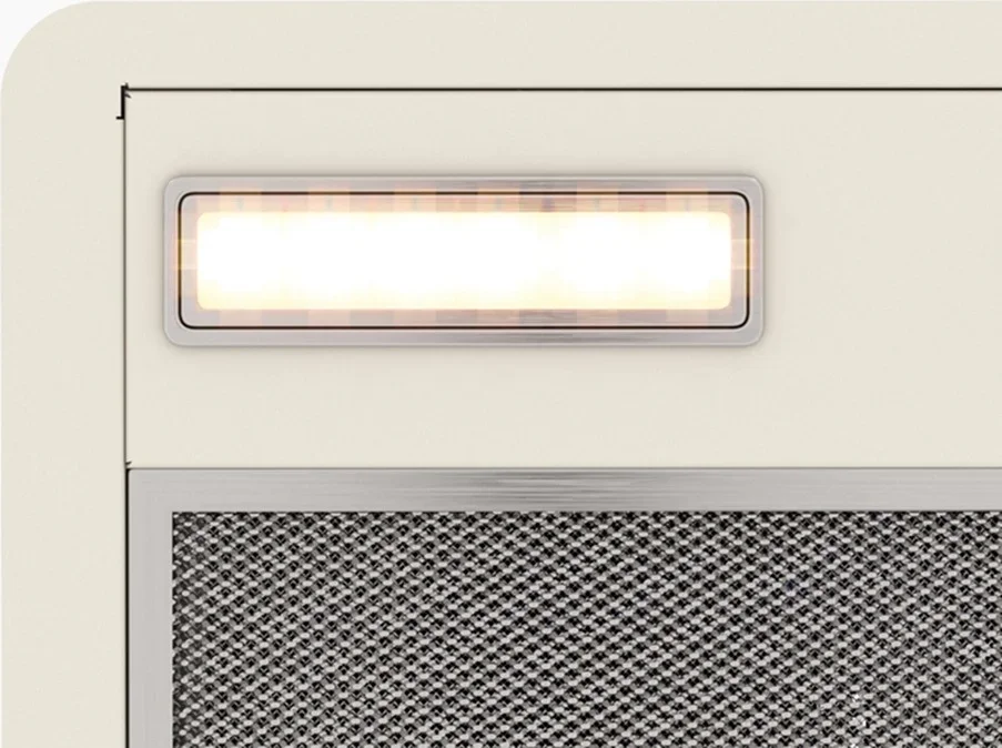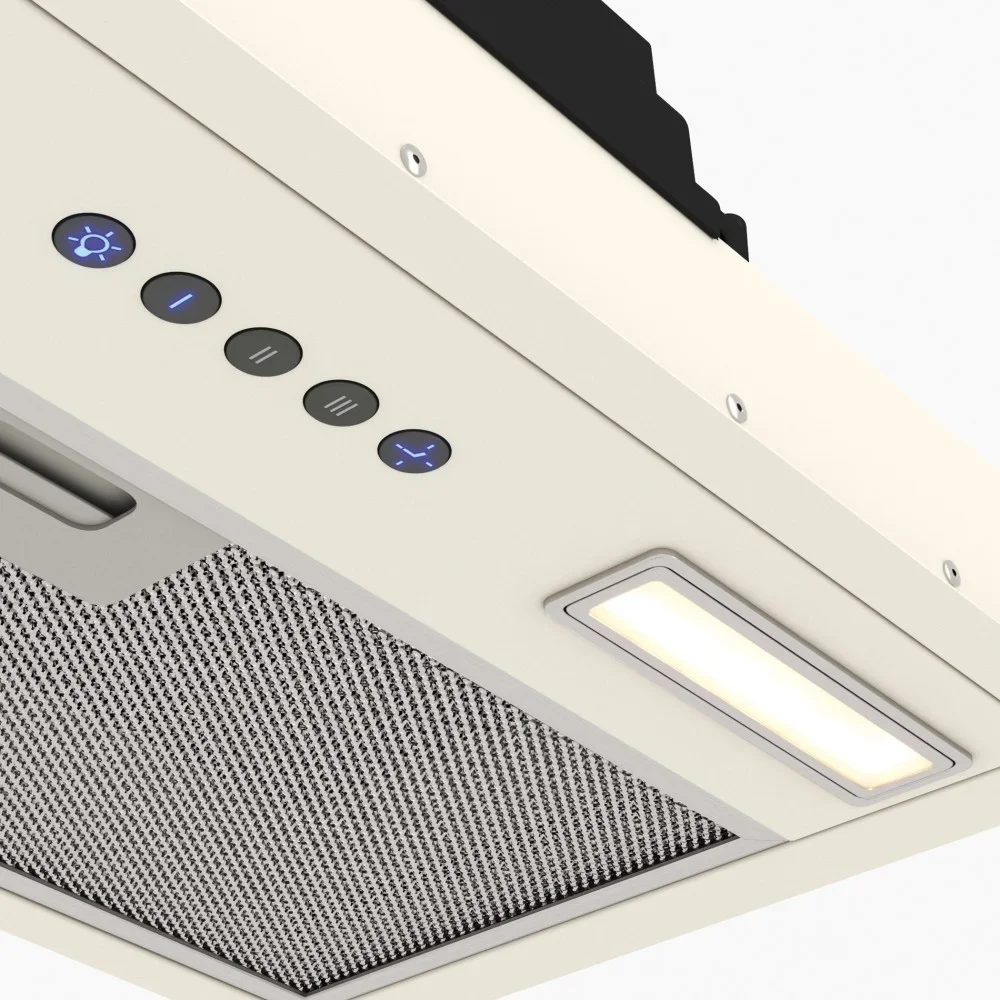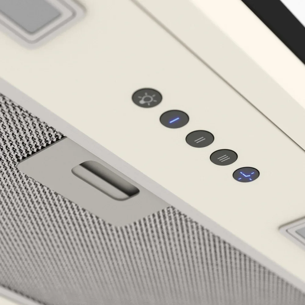 выглядит сдержанно и лаконично: компактный встроенный модуль бежевого цвета, рассчитанный для монтажа в кухонный шкаф. При габаритах 23.7×50×28.2 см он легко прячется в верхней мебели, оставляя ровную фронтальную панель с кнопочными элементами управления. Дизайн Smart подчёркивает простую геометрию и нейтральную тональность, что делает устройство универсальным в сочетании с разной отделкой кухни.