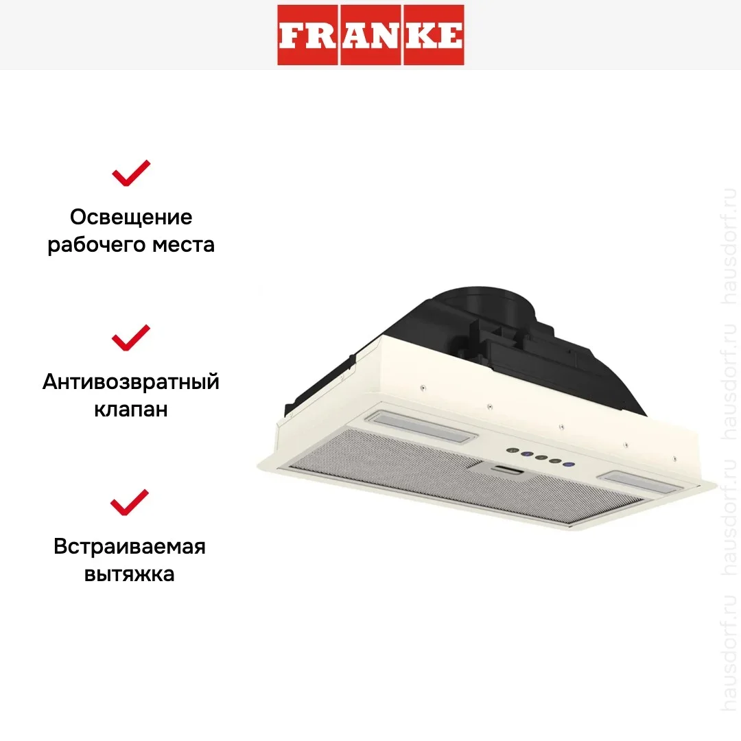 Материал корпуса — полимер. Корпус изготовлен из синтетического полимерного материала, что делает агрегат лёгким и простым в уходе: поверхность не боится бытовой влажности и легко очищается от капель жира. Такое решение уменьшает общий вес модуля и упрощает монтаж в шкафу, при этом обеспечивает стойкость к эксплуатации на кухне. Рекомендованные высоты установки: 75 см над газовой плитой и 65 см над электрической.