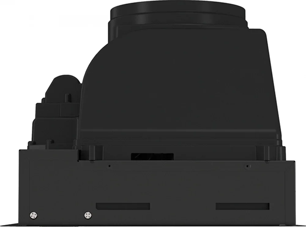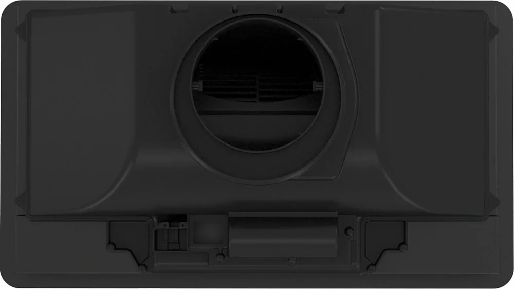 Небольшая высота корпуса — 23,7 см — облегчает монтаж под шкафом и снижает визуальную массу над плитой. Для подключения к вытяжной системе предусмотрен патрубок диаметром 150 мм, что обеспечивает совместимость с типовыми воздуховодами и оптимальную тягу при отводе воздуха наружу. При отсутствии возможности вывода наружу прибор легко переводится в режим циркуляции: достаточно установить угольный фильтр, который продаётся отдельно.