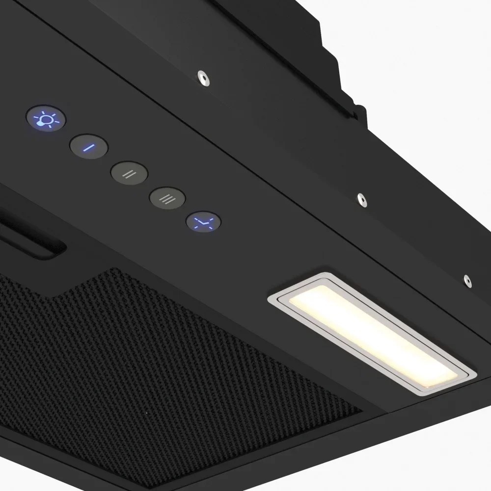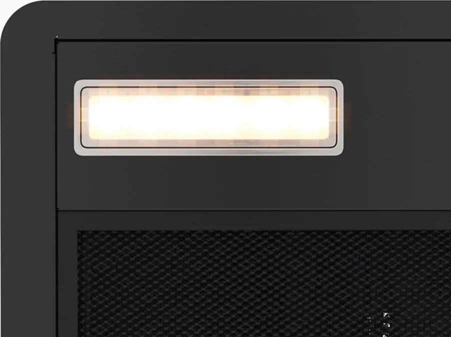 Фильтрация обеспечивается алюминиевым жироулавливающим фильтром, который легко снимается и моется вручную или в посудомойке. Один фильтр покрывает всю площадь забора воздуха при стандартной сборке, а при работе в циркуляционном режиме устанавливается дополнительный угольный модуль для нейтрализации запахов. Светодиодная подсветка рабочей зоны представлена двумя лампами по 1,5 Вт, создаёт равномерный свет и экономит электроэнергию.