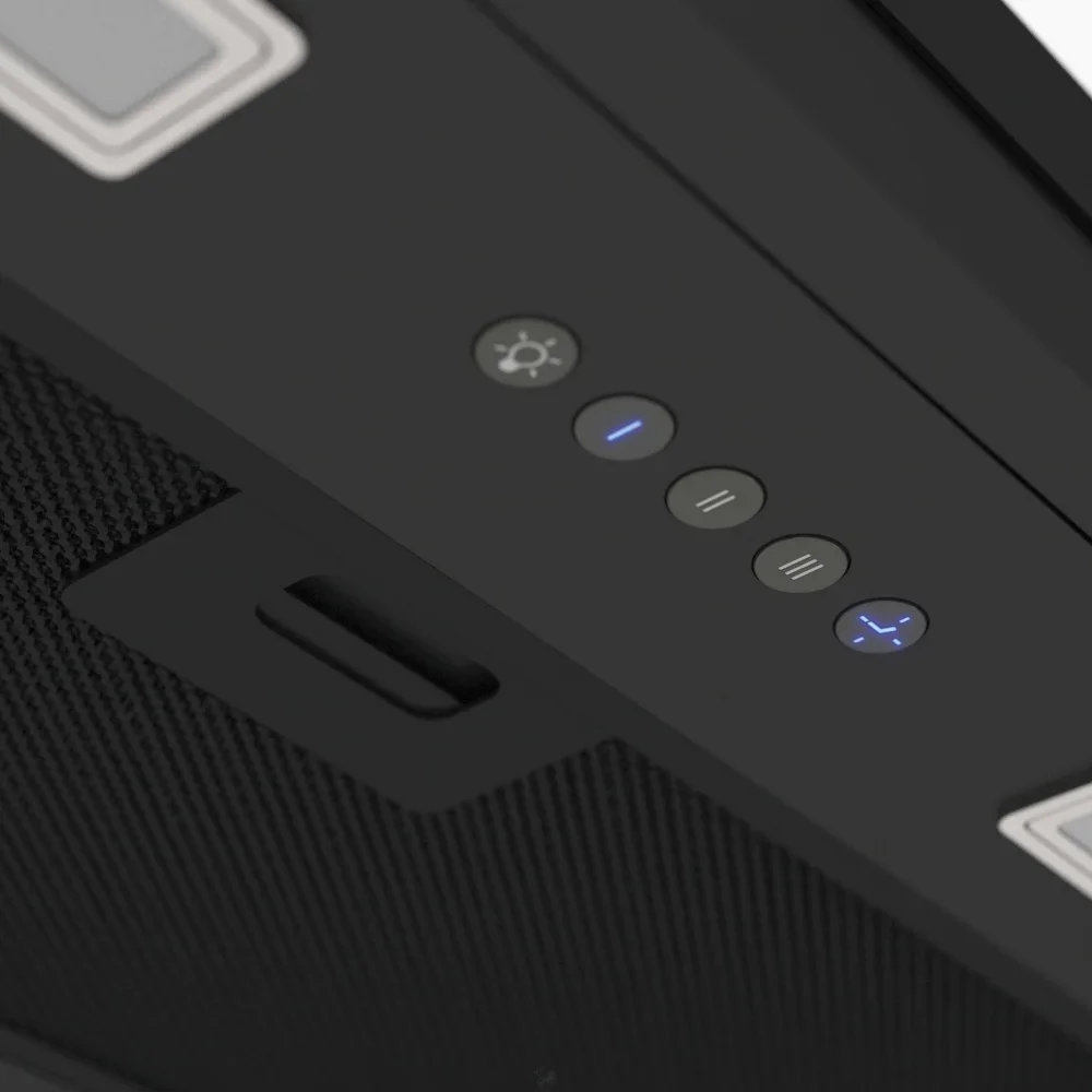 Работа агрегата основана на одном мощном моторе мощностью 142 Вт, что даёт максимальную производительность до 1000 м³/ч. Три скорости позволяют подобрать баланс между интенсивностью очистки и уровнем шума. На максимальной ступени шум достигает 56 дБ, что сопоставимо с обычным разговором, а на пониженных режимах шум заметно ниже. Наличие антивозвратного клапана предотвращает попадание уличного воздуха и запахов обратно в кухню при неработающем моторе.