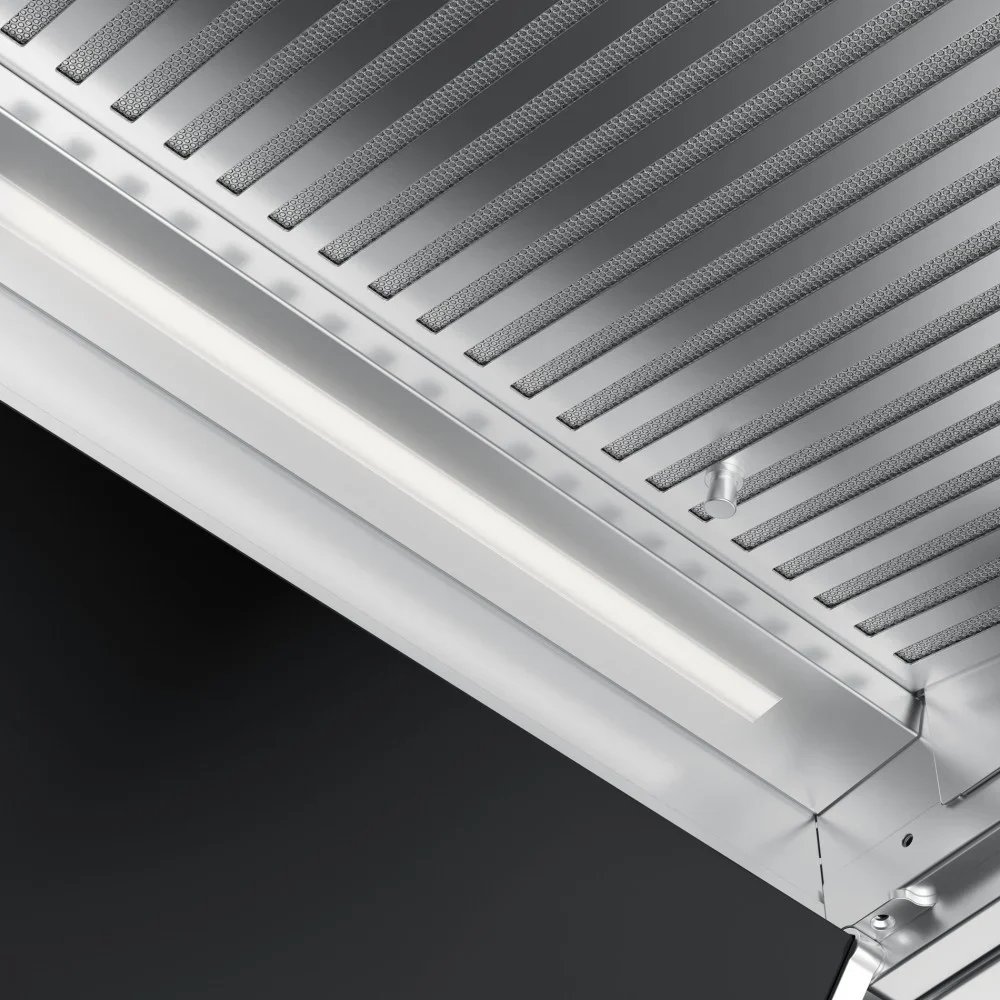 Ключевая особенность устройства — технология DRIP-FREE, исключающая образование и стекание конденсата во время работы. Это инновационное решение повышает уровень гигиены, защищает фасады, технику и столешницы от влаги, а также упрощает уход за рабочей зоной. Подключение к воздуховоду диаметром 150 мм гарантирует мощный и бесперебойный отвод пара, жировых частиц и посторонних запахов, обеспечивая быстрое обновление атмосферы даже при интенсивной готовке.