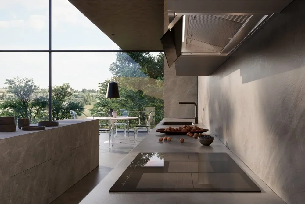 Дизайн сочетает нержавеющую сталь с чёрным стеклом, что придаёт интерьеру современный и благородный вид. Стальные элементы говорят о долгом сроке службы и устойчивости к механическим воздействиям, а стеклянная панель добавляет визуальной лёгкости и простоты в уходе. Фронтальная сенсорная панель управления органично вписывается в фасад и удобна в обращении.