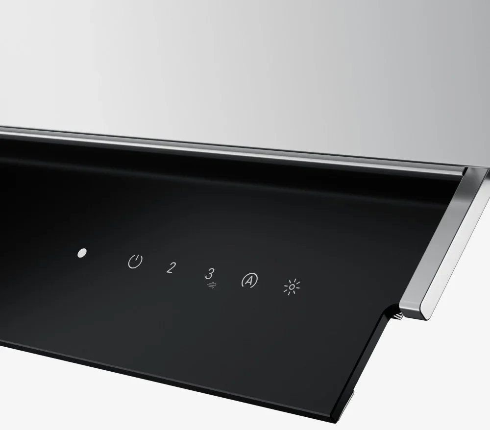 Управление электронное, сенсорное, расположено спереди — переключатели под рукой, не нужно тянуться. Модель поддерживает систему Hob-hood connection для синхронизации с варочной панелью. Светодиодная подсветка состоит из двух ламп.