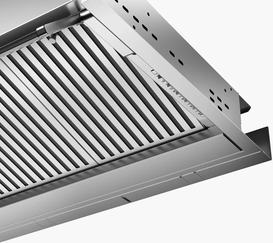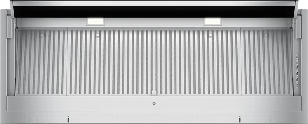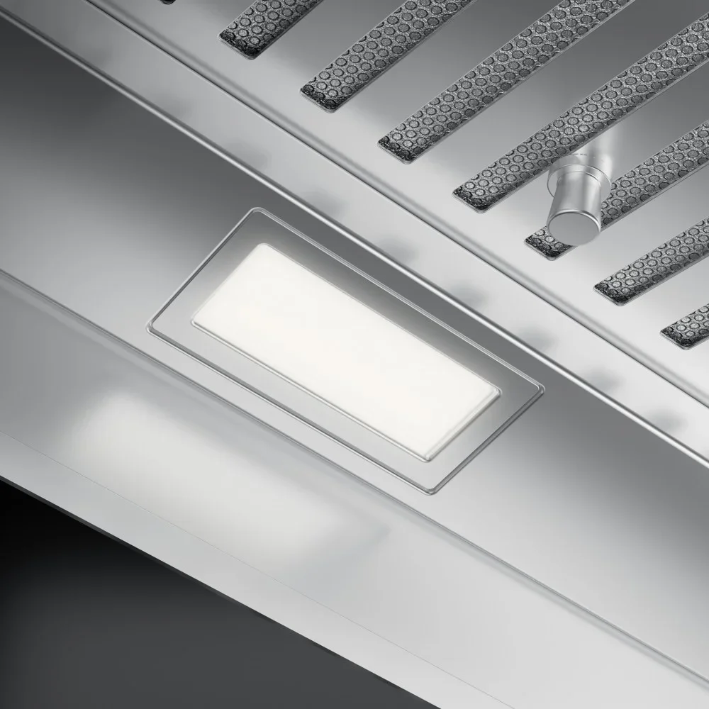 Освещение рабочей зоны реализовано с помощью двух светодиодных ламп, дающих равномерную подсветку плиты. Масляно-жировая нагрузка нейтрализуется через фильтр из нержавеющей стали; при необходимости можно установить угольный элемент для циркуляции. Конструкция предусматривает сбор конденсата с использованием технологии Drip Free, что снижает необходимость частой уборки внутренней поверхности. Электропитание 220-240 В, 50-60 Гц; класс энергопотребления B.