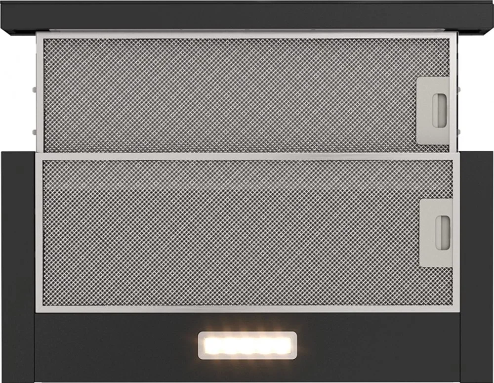 Функции управления реализованы через фронтальную сенсорную панель с электронными элементами, что гарантирует быструю и точную настройку даже влажными руками. Встроенный таймер и функция автоматического отключения дают возможность не следить за вытяжкой постоянно — она завершит работу по заданному времени. Рабочее освещение представлено светодиодом мощностью 2 Вт. Алюминиевый кассетный фильтр задерживает крупные частицы жира и легко снимается для мойки.