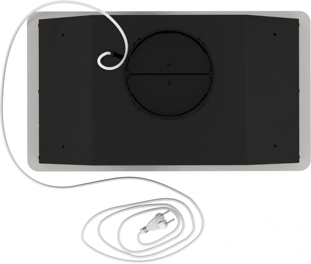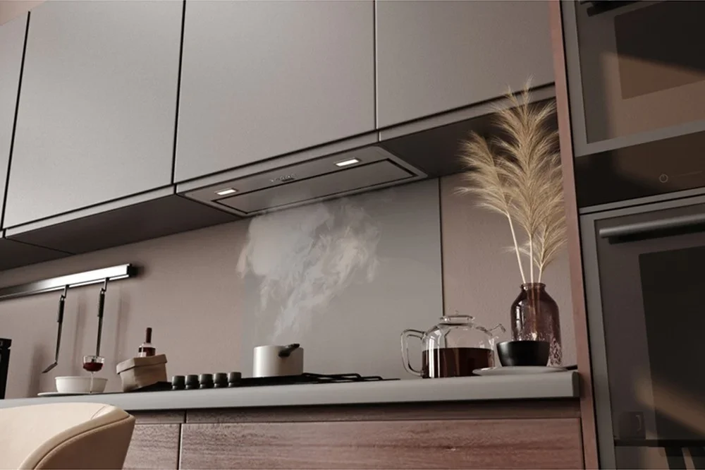 Эта встраиваемая модель выполнена в строгом черном цвете и металле, что придаёт кухонному гарнитуру аккуратный и современный вид. Компактные габариты 28.2×50×28.2 см позволяют устанавливать прибор в шкаф над плитой, сохраняя чистые линии интерьера и освобождая пространство на виду. Дизайн Smart подразумевает минимализм и продуманную эргономику: фронтальные кнопки управления расположены так, чтобы ими было удобно пользоваться даже при низко навешанном шкафе.