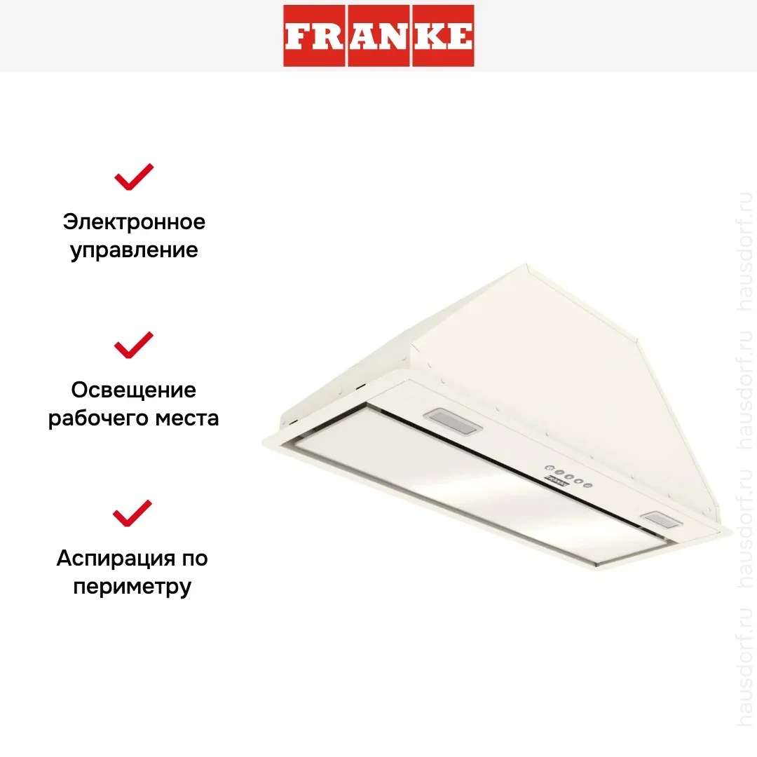 Встраиваемая вытяжка — выбор тех, кто хочет максимально задекорировать технику, или владельцев маленькой кухни. Тип встраивания: в шкаф. Обратите внимание на цветовые сочетания модели Franke VERA 72 BG, чтобы органично вписать ее в свою квартиру. Оттенок корпуса: бежевый. Благодаря лампочкам, которые расположены на нем, можно освещать плиту и столешницу рядом, чтобы готовить было еще проще и приятнее.