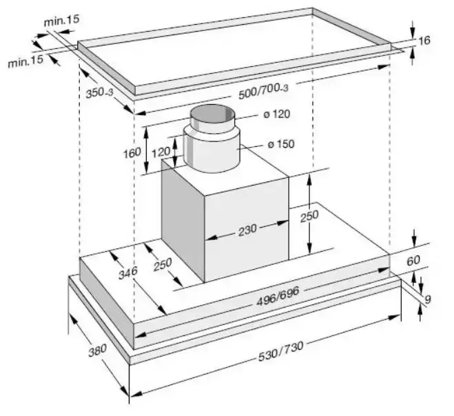 | Дополнительные параметры | Расстояние между вытяжкой и варочной поверхностью 60 - 65 см | |