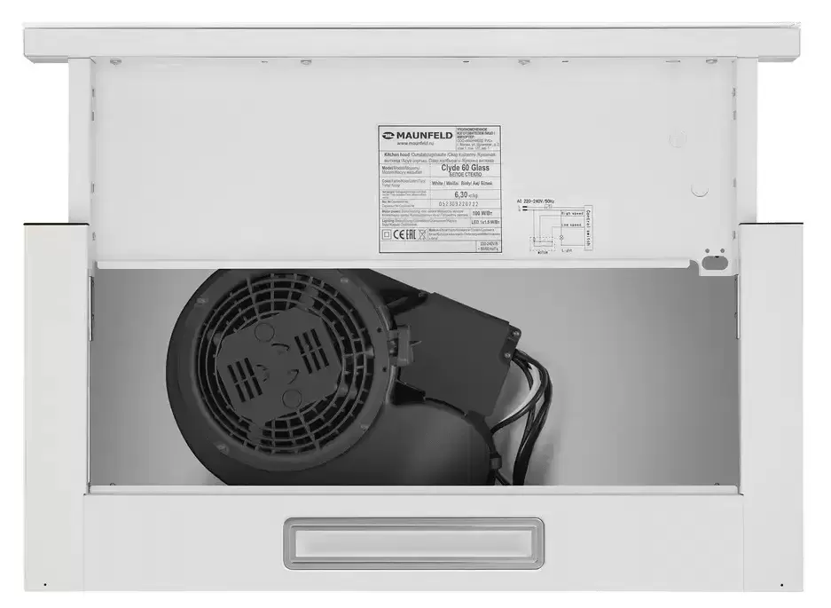Встраиваемая вытяжка — выбор тех, кто хочет максимально задекорировать технику, или владельцев маленькой кухни. Тип встраивания: в шкаф. Обратите внимание на цветовые сочетания модели Maunfeld Clyde 60 Glass White, чтобы органично вписать ее в свою квартиру. Оттенок корпуса: белый. Фишка этой техники — выдвижная панель.