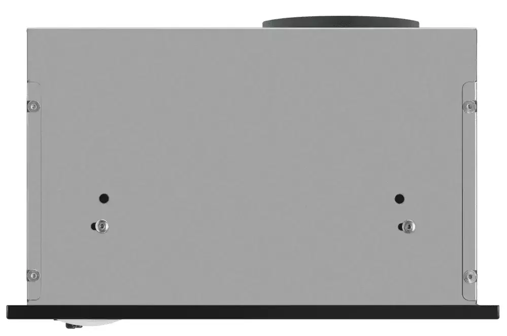Вытяжка работает в режимах отвода и циркуляции, поэтому загрязнения удаляются из комнаты и перенаправляются в воздуховод, при этом можно очистить воздух и использовать повторно за счет возвращения его в помещение. Количество скоростей в этой модели: 3 шт. При этом максимальная производительность составляет 850 куб.м./ч. Уровень шума при полной загруженности — 55 дБ.