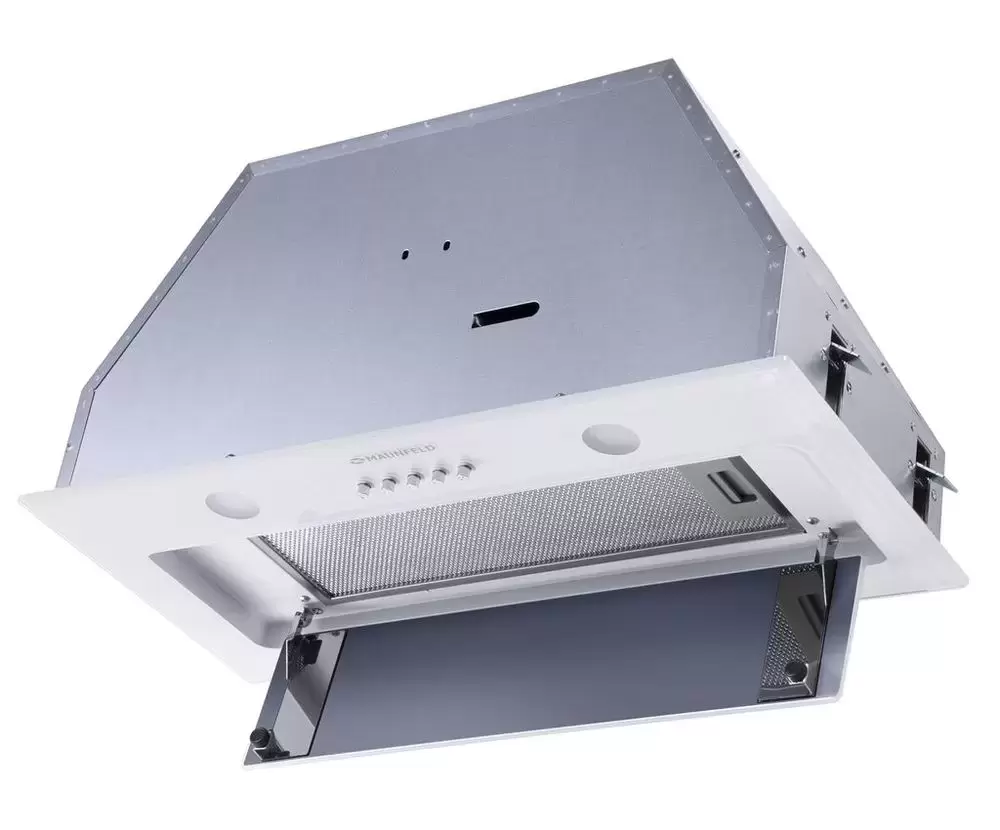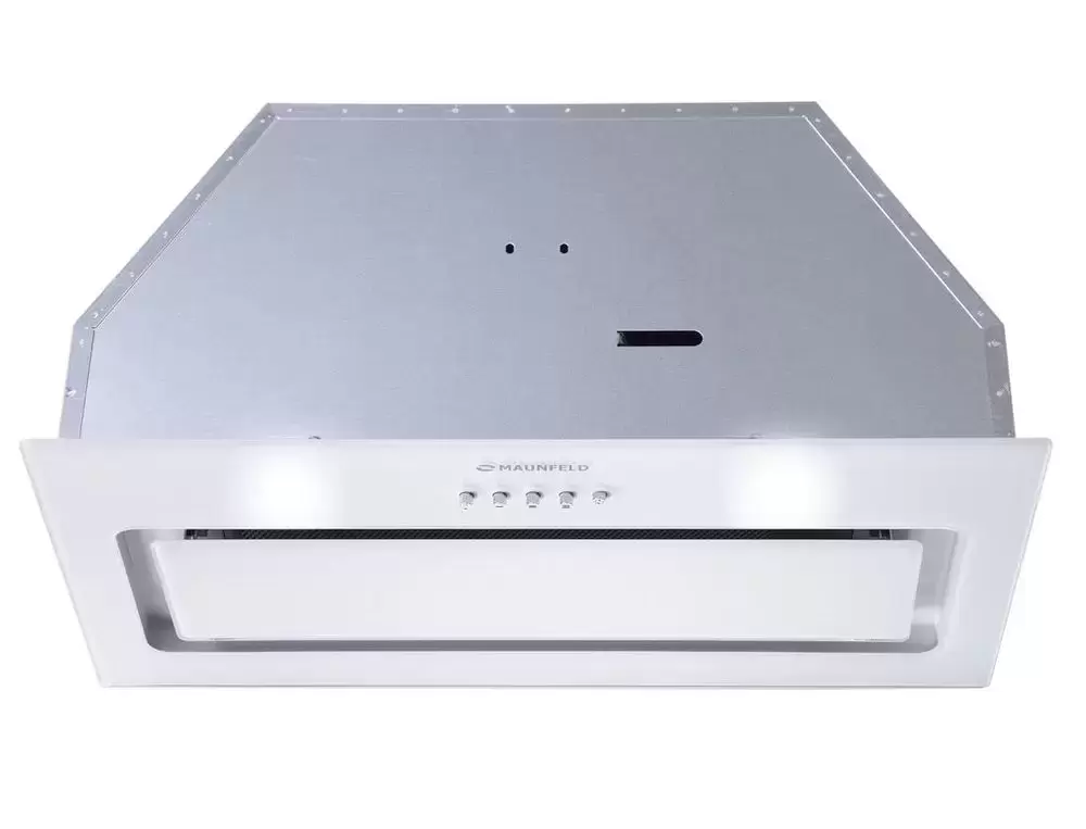 Встраиваемая вытяжка MAUNFELD TRAPEZE 601GG в белом цвете хорошо подходит для кухни, общей площадью не более 20 квадратных метров. Благодаря автономной конструкции такая вытяжка может быть установлена как над плитой или варочной панелью, так и в любом другом месте кухни или столовой. Основной функционал отвода и циркуляции воздуха обеспечивается благодаря алюминиевому жироулавливающему фильтру, возможность установки угольного фильтра делает режим циркуляции более эффективным. Три режима мощности позволяют выбирать оптимальный для определенной ситуации. Встроенная светодиодная подсветка позволяет обеспечить яркое точечное освещение. Режимы мощности используются в зависимости от ситуации, обеспечивая мощный отвод дыма при интенсивной готовке или легкое проветривание. Режим циркуляции используется для возвращения воздуха в помещение и особенно эффективен в случае установки дополнительного угольного фильтра.
