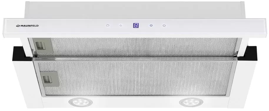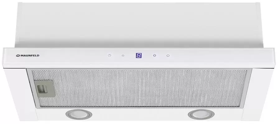 Встраиваемая вытяжка — выбор тех, кто хочет максимально задекорировать технику, или владельцев маленькой кухни. Тип встраивания: в шкаф. Обратите внимание на цветовые сочетания модели Maunfeld VS Touch 850 60 White, чтобы органично вписать ее в свою квартиру. Оттенок корпуса: белый. Благодаря лампочкам, которые расположены на нем, можно освещать плиту и столешницу рядом, чтобы готовить было еще проще и приятнее. Фишка этой техники — выдвижная панель.