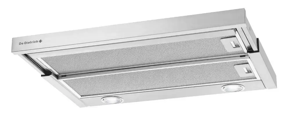 Встраиваемая вытяжка — выбор тех, кто хочет максимально задекорировать технику, или владельцев маленькой кухни. Тип встраивания: в шкаф. Обратите внимание на цветовые сочетания модели De Dietrich DHT1146X, чтобы органично вписать ее в свою квартиру. Оттенок корпуса: platinum / Inox. Благодаря лампочкам, которые расположены на нем, можно освещать плиту и столешницу рядом, чтобы готовить было еще проще и приятнее.