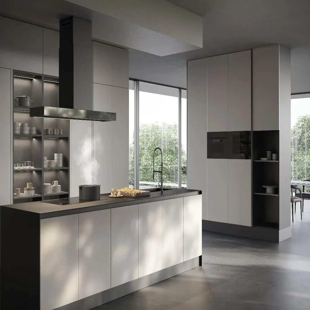 Вытяжка Elica Haiku Dry BL RO A 90 LT — островной прибор с дизайнерской подписью Fabricio Crisà, выдержанный в элегантном матовом чёрном цвете и аккуратных геометрических линиях. Её визуальная простота подходит для современных кухонь-островов и делает прибор центром внимания без перегрузки пространства. Корпус выполнен из качественного металла с износостойким покрытием, что лёгко сочетается с индукционными плитами или столешницами из натурального камня. Дизайн продуман так, чтобы сочетать эстетичность и функциональность: плавные грани скрывают технические элементы и упрощают уход.
