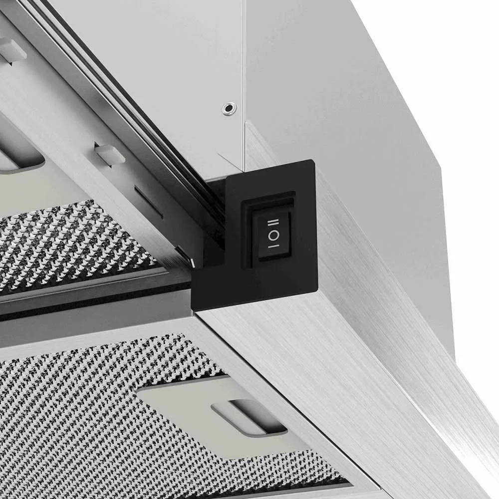 Устройство оснащено воздуховодом диаметром 150 мм, что гарантирует мощный и бесперебойный отвод пара, жировых взвесей и посторонних запахов, возникающих в процессе приготовления пищи. Несмотря на уменьшенную высоту корпуса, вытяжка демонстрирует высокую производительность, оперативно обновляя атмосферу даже при интенсивной готовке на нескольких конфорках.