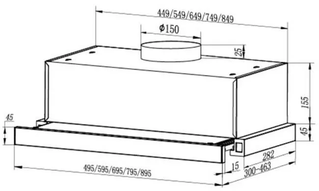 Вытяжка Faber AMPIRA XS 90 — компактное, но мощное решение для современной кухни, сочетающее высокую эффективность, лаконичный дизайн и удобство встраивания. Модель предназначена для монтажа внутрь навесного шкафа, что позволяет сохранить целостность интерьера и избежать визуального перегруза. Её габариты — 22,5 см в высоту, 89,5 см в ширину и 30 см в глубину — обеспечивают минимальное занимаемое пространство при одновременном охвате крупной варочной зоны. Максимальная высота при установке достигает 75 см, что даёт гибкость при подключении к вентиляционной системе и способствует стабильной и эффективной работе.