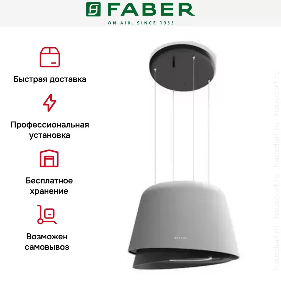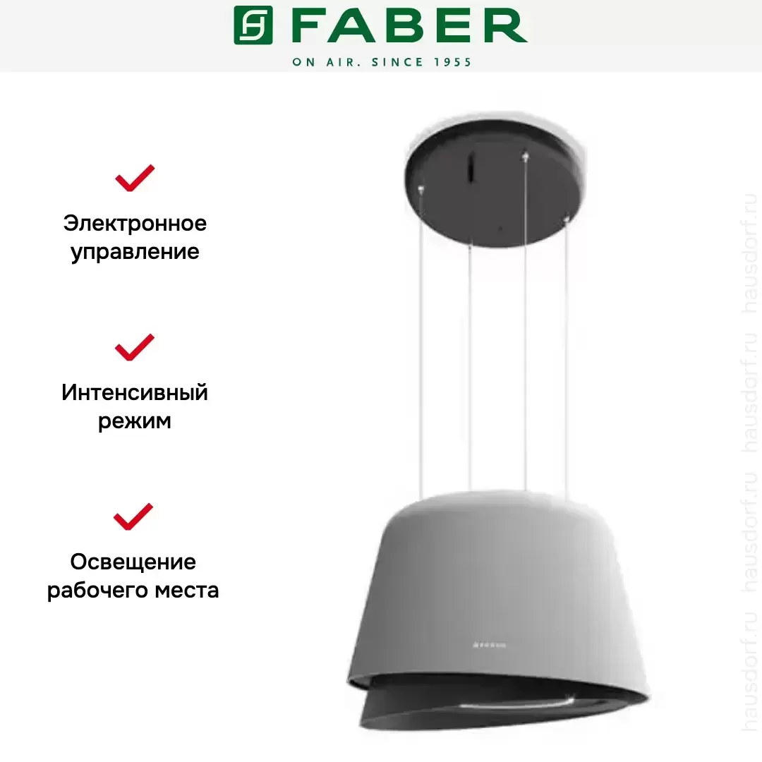 Красивое исполнение вытяжки позволяет использовать прибор не только как очиститель воздуха, но и один из акцентов в интерьере. Благодаря креплению вытяжки к потолку расширяются возможности в выборе места установки модели. Предусматривается четыре скоростных режима, а также экономичная светодиодная подсветка.