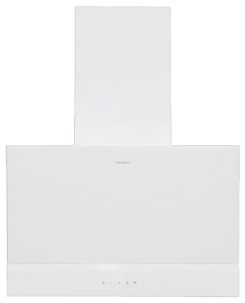 Наклонная вытяжка — один из самых практичных и красивых вариантов воздухоочистителей. Благодаря своей конструкции она не мешает доступу к варочной зоне. Это преимущество особенно важно для высоких людей. Небольшая глубина не выделяет вытяжку на стене, модель смотрится аккуратно и компактно. Белый корпус отлично сочетается с большинством цветовых интерьерных решений. Сенсорные кнопки расположены на фронтальной стороне. Для удобства они снабжены подсветкой и графикой. За счет хорошей чувствительности прибор мгновенно реагирует на команды пользователя.