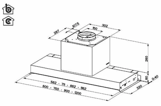 Устройство оснащено воздуховодом диаметром 150 мм, гарантирующим мощный и бесперебойный отвод загрязнённого воздуха. Благодаря продуманной системе циркуляции, вытяжка оперативно нейтрализует испарения, предотвращая оседание конденсата и жировых частиц на мебели и технике. Технология ZERO DRIP дополнительно минимизирует риск появления капель конденсата, обеспечивая чистоту и гигиеничность в зоне готовки.