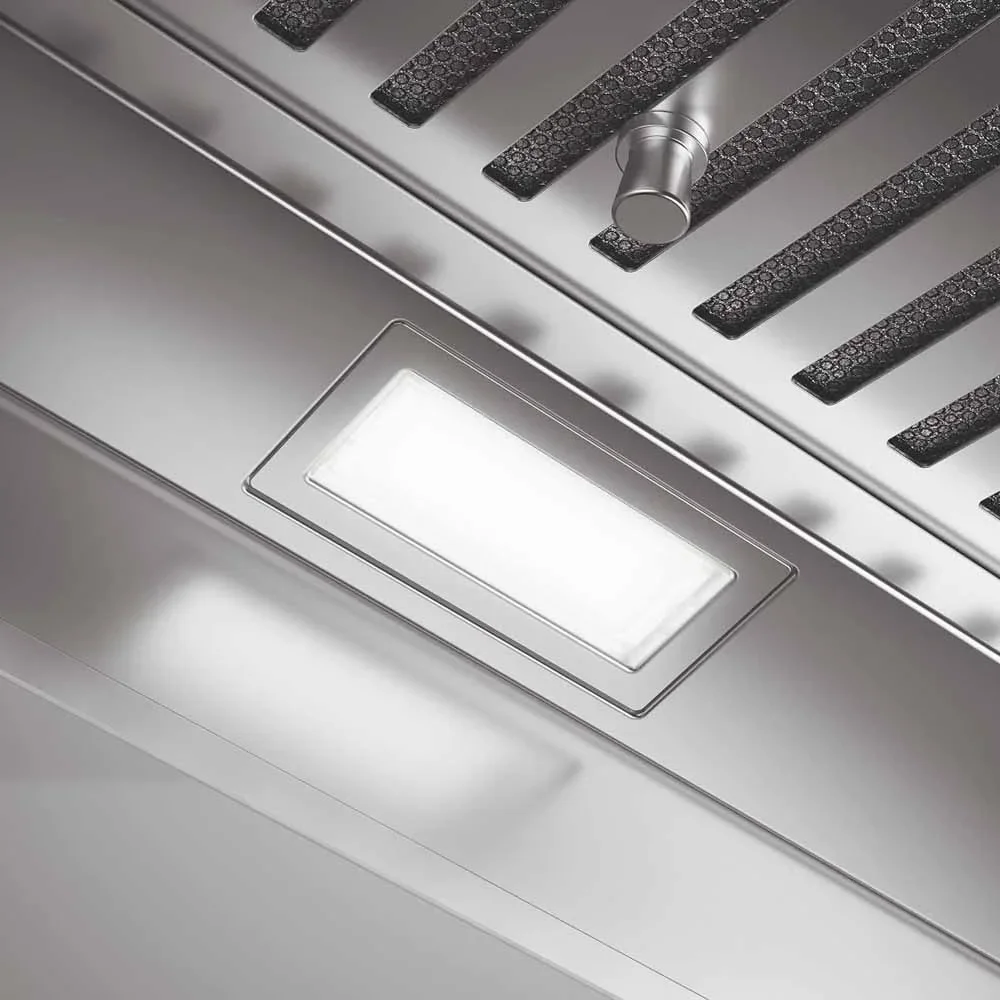 Несмотря на свои масштабы, вытяжка работает с низким уровнем шума, не нарушая комфорта даже при длительном использовании. Она идеально подходит для открытых кухонь-гостиных, островных зон или просторных загородных домов, где важны не только мощность и надёжность, но и визуальная гармония.