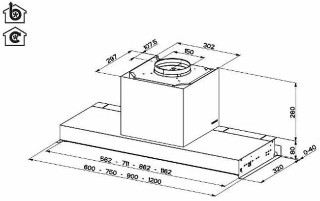 Дизайн вытяжки отличается лаконичностью и строгостью форм: отсутствие декоративных излишков, ровные линии и сдержанная эстетика делают её универсальной для интерьеров в стиле минимализм, лофт или современная классика. Панель управления интуитивно понятна, а материалы корпуса устойчивы к коррозии, жиру и влаге, что значительно продлевает срок службы и упрощает обслуживание.