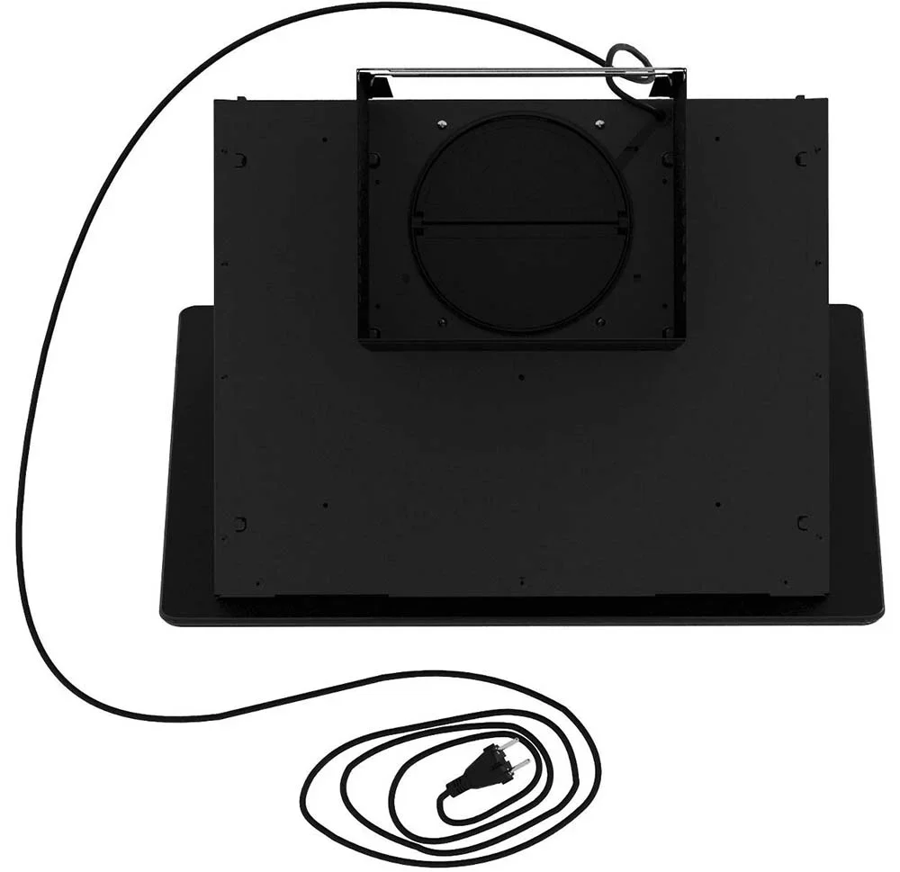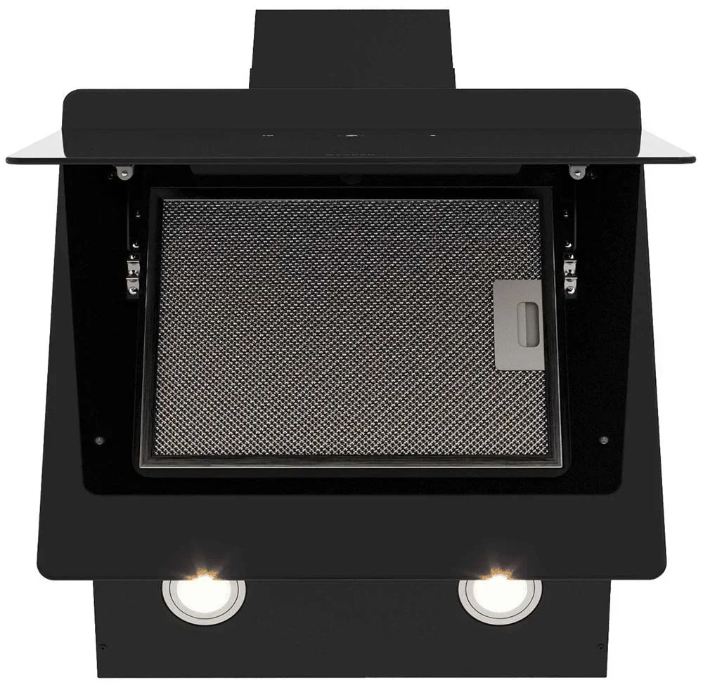 Вытяжка Faber Tocco BK-60 выполнена в наклонном формате и сочетает черное стекло с окрашенным металлом, создавая лаконичный и современный облик. Ее аккуратные габариты 40×59.5×36.1 см позволяют органично вписать прибор в кухню стандартного размера. Наклонный дизайн освобождает рабочую зону над плитой и придает интерьеру легкую динамику, а чёрная отделка служит универсальным решением для разных стилей.