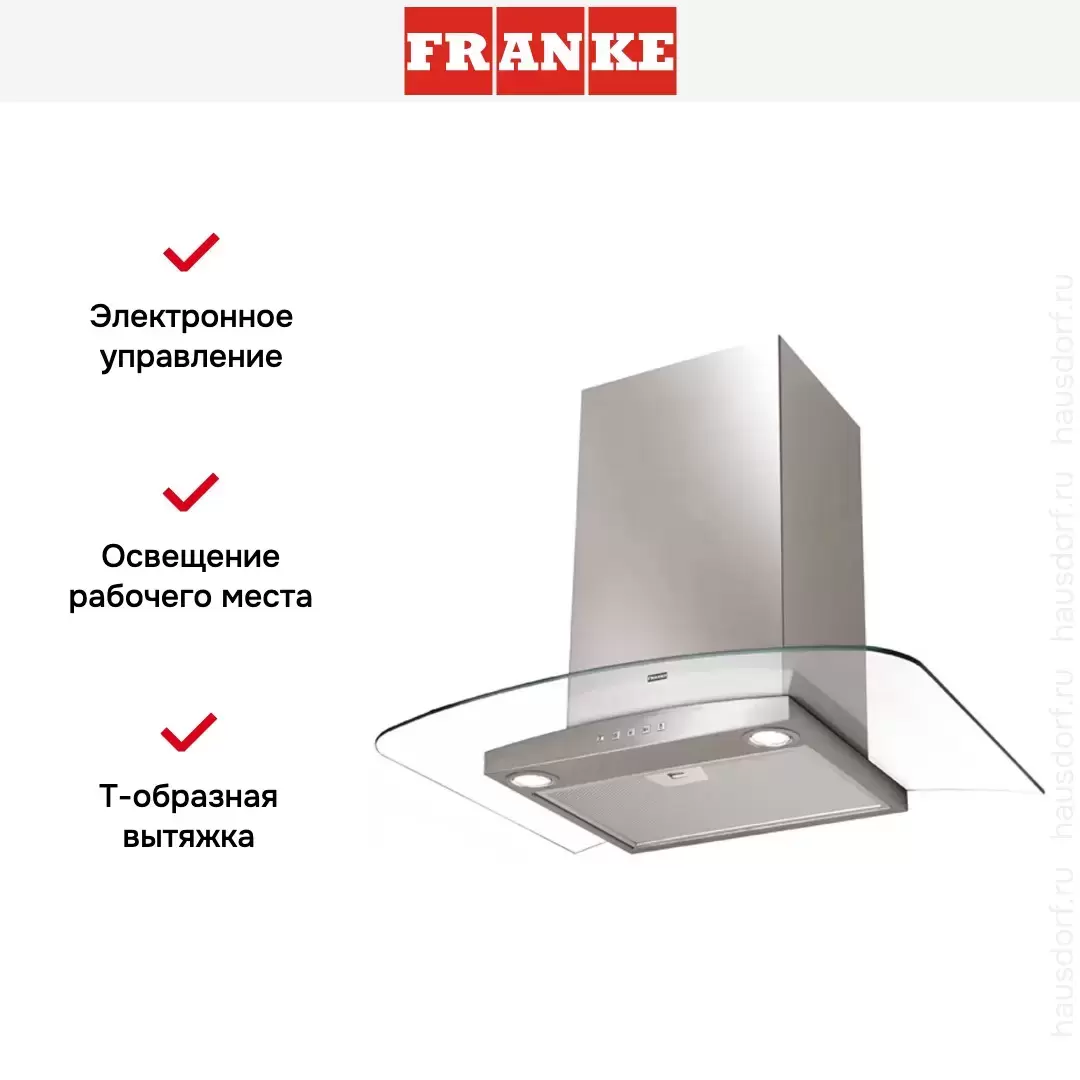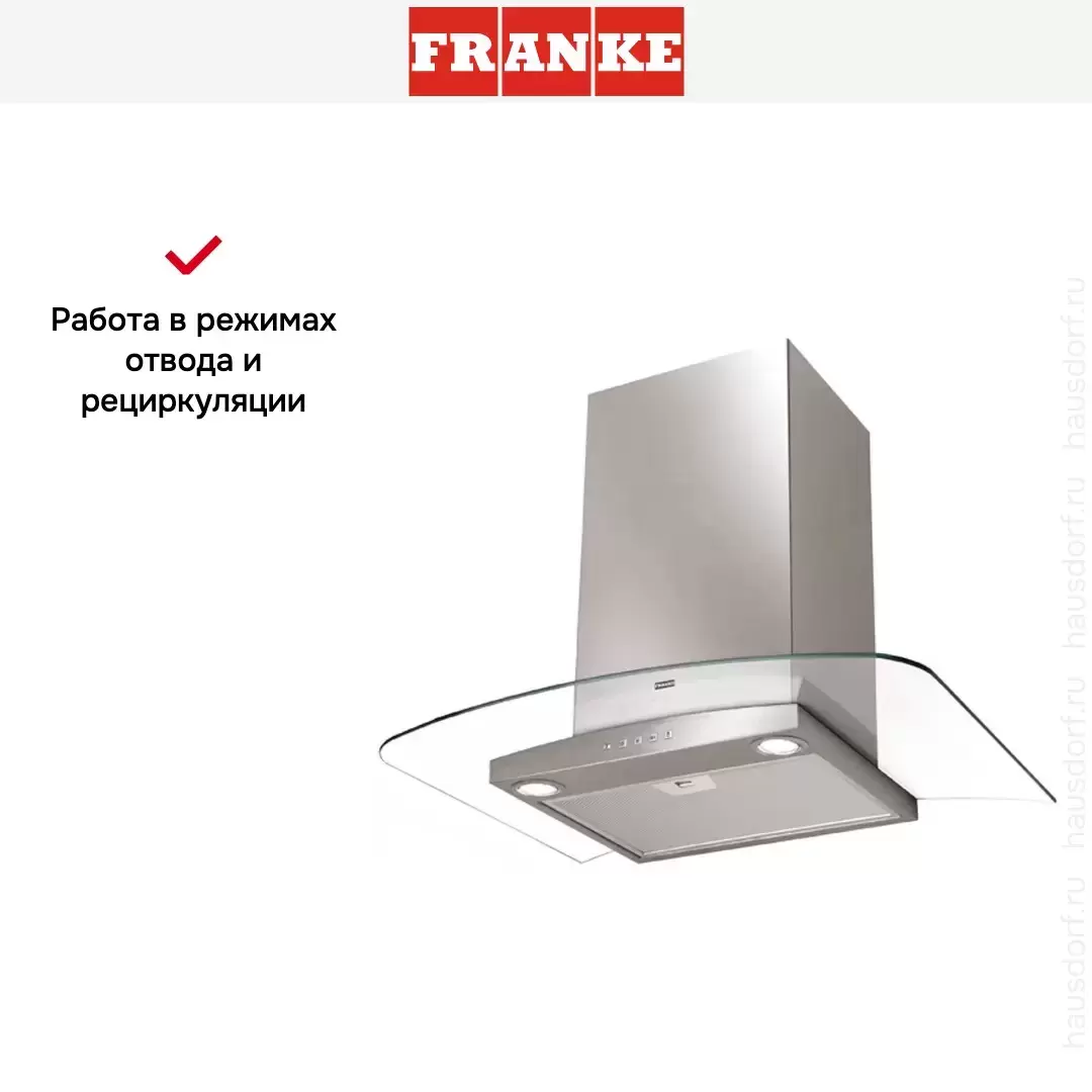 Обратите внимание на цветовые сочетания модели Franke FAR 605 XS, чтобы органично вписать ее в свою квартиру. Оттенок корпуса: нержавеющая сталь/стекло. Благодаря лампочкам, которые расположены на нем, можно освещать плиту и столешницу рядом, чтобы готовить было еще проще и приятнее.