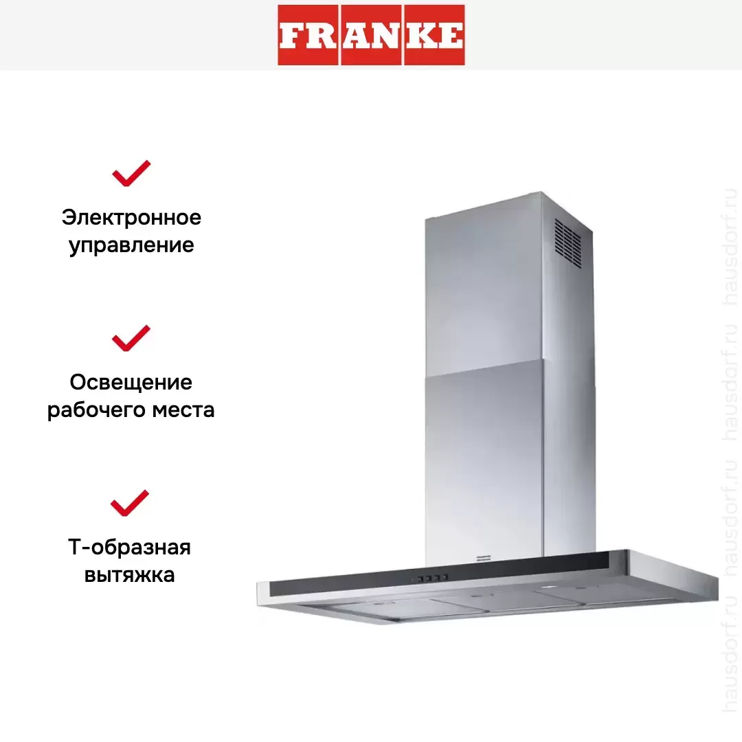 Обратите внимание на цветовые сочетания модели Franke FNE 905 XS, чтобы органично вписать ее в свою квартиру. Оттенок корпуса: нержавеющая сталь/черное стекло. Благодаря лампочкам, которые расположены на нем, можно освещать плиту и столешницу рядом, чтобы готовить было еще проще и приятнее.