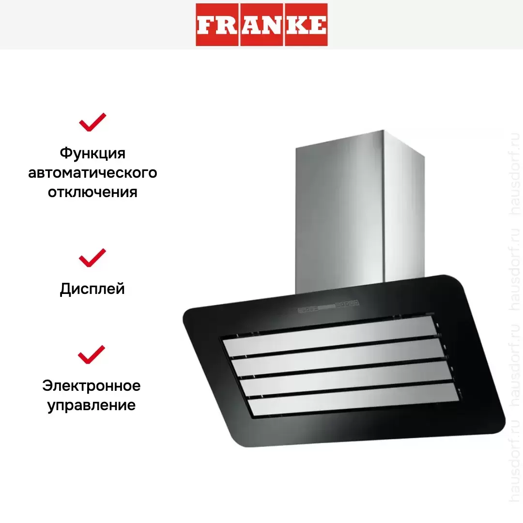 Данная вытяжка крепится на стену и имеет наклонную фронтальную панель, что придает изюминку дизайну и позволяет сохранить свободное рабочее пространство внизу. Обратите внимание на цветовые сочетания модели Franke FRO 908 BK/XS, чтобы органично вписать ее в свою квартиру. Оттенок корпуса: нержавеющая сталь/черное стекло. Благодаря лампочкам, которые расположены на нем, можно освещать плиту и столешницу рядом, чтобы готовить было еще проще и приятнее.