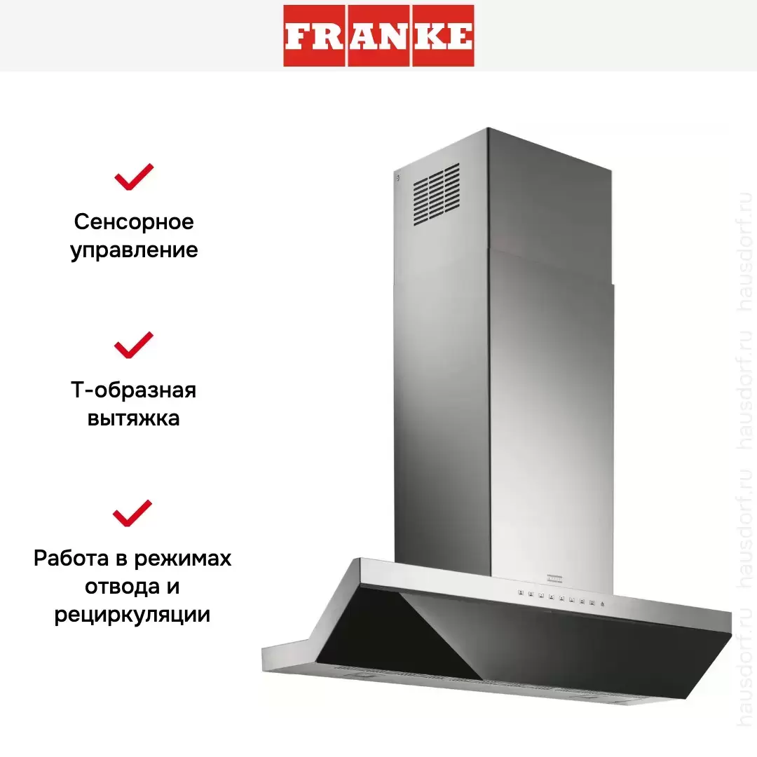 Обратите внимание на цветовые сочетания модели Franke FVA 908 XS/BK, чтобы органично вписать ее в свою квартиру. Оттенок корпуса: нержавеющая сталь/черное стекло. Благодаря лампочкам, которые расположены на нем, можно освещать плиту и столешницу рядом, чтобы готовить было еще проще и приятнее.