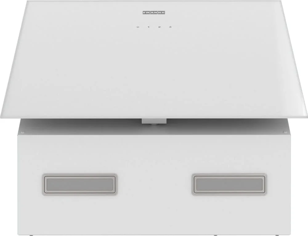 Выглядит как наклонная вытяжка с выразительным стеклянным экраном и облицовкой из нержавеющей стали. Модель выполнена в белом цвете в духе коллекции Maris: лаконичные линии, слегка наклонённая передняя панель и аккуратно спрятанные элементы управления. Размеры 81.9×49×41.4 см делают прибор заметным, но не громоздким; при необходимости высоту можно увеличивать до 120 см, сохраняя ровный силуэт на кухне.