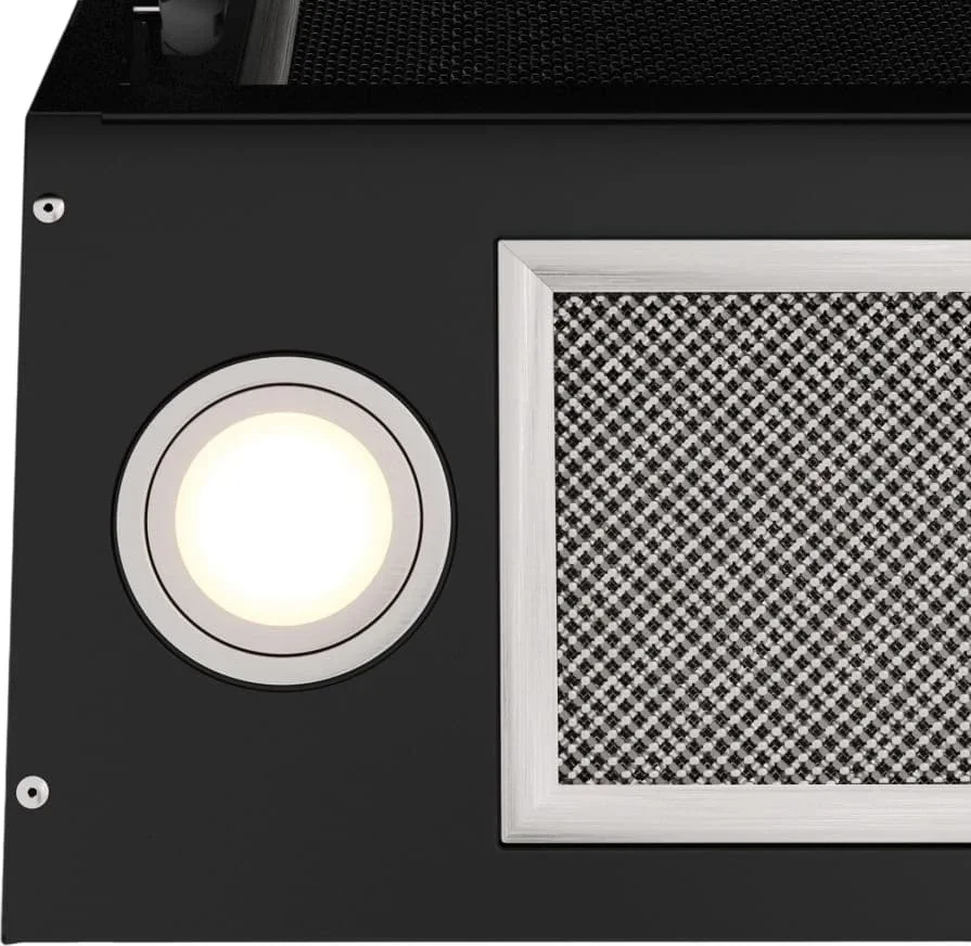 Корпус выполнен из нержавеющей стали в паре со стеклянным экраном. Нержавейка отвечает за каркас и элементы крепления, обеспечивая прочность конструкции и стойкость к обычным кухонным воздействиям, а стекло образует гладкую лицевую поверхность, удобную в уборке и визуально отсекающую рабочую зону вытяжки.