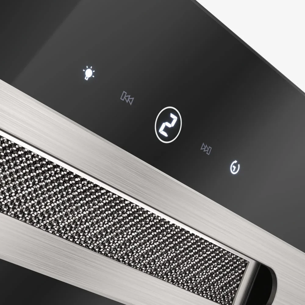 Аспирация по периметру обеспечивает захват пара по краям рабочей зоны, повышая эффективность без увеличения мощности. Наличие антивозвратного клапана препятствует проникновению запахов обратно в кухню при отключенном моторе. Три рабочих скорости позволяют подобрать оптимальный режим по интенсивности и уровню шума, а индикация ступеней мощности отображается на фронтальном дисплее.