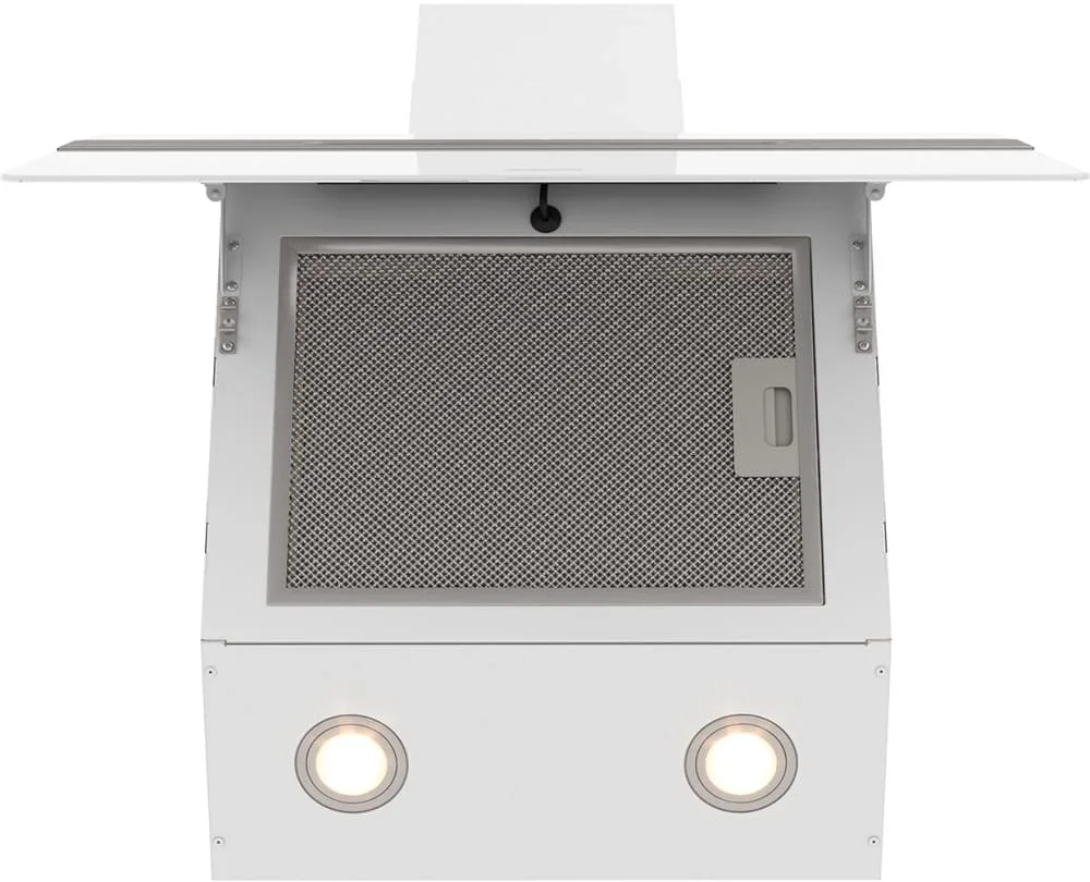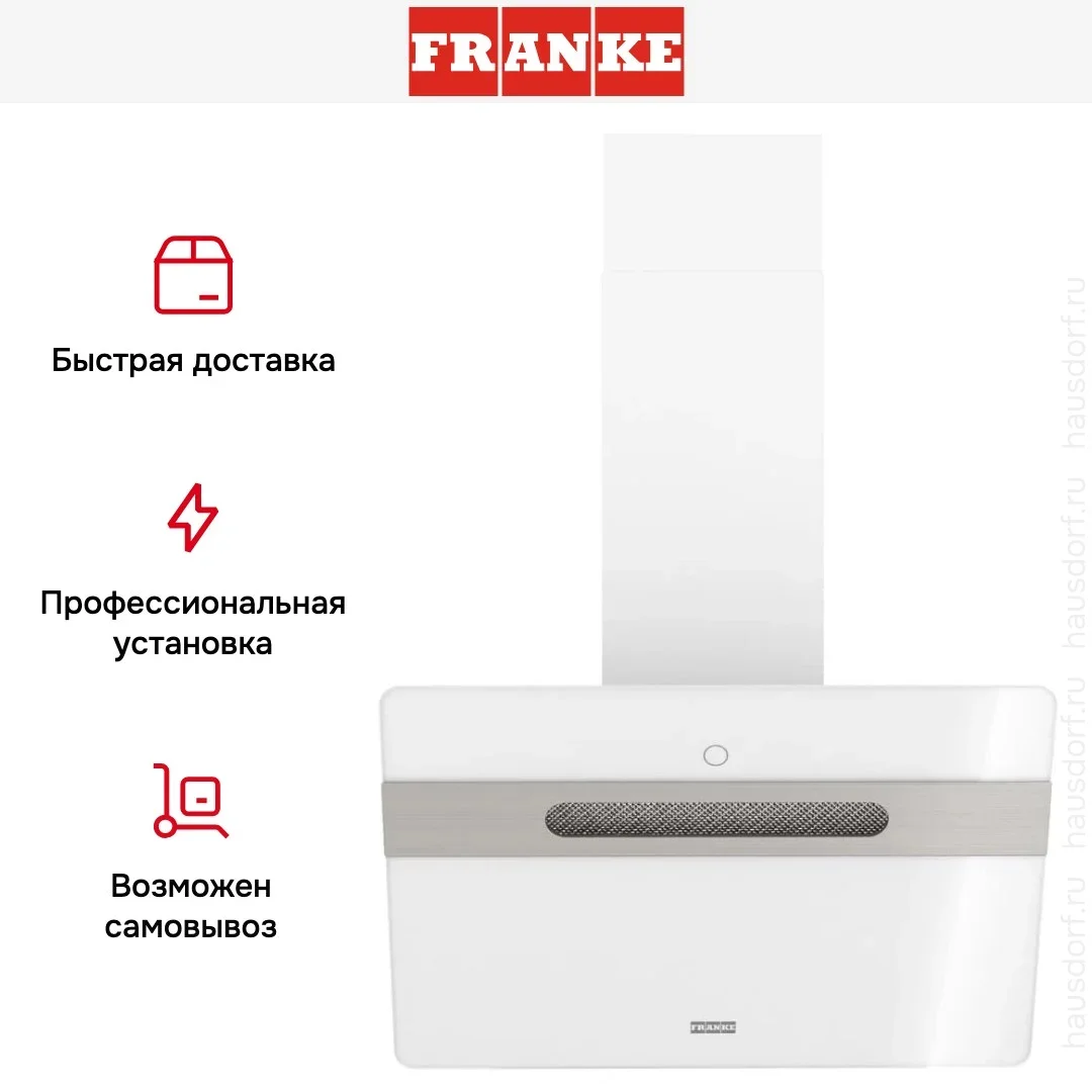 Вытяжка Franke Sterling 60 WH — элегантный наклонный прибор в белом цвете, выполненный из нержавеющей стали и стекла. Его стеклянный экран плавно продолжает корпус и создает легкий визуальный акцент, не перегружая интерьер. Наклонная форма снижает риск попадания брызг и обеспечивает удобный доступ к поверхности плиты, а компактные габариты 41.559.538.7 см подходят для стандартных варочных панелей шириной 60 см.