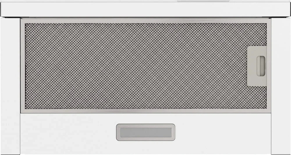 Выглядит минималистично и сдержанно: белого цвета корпус с контрастным стеклянным экраном и выдвижной панелью. Дизайн Maris подчёркивает прямые линии и компактные габариты 29×59.5×31.5 см, что делает устройство незаметным в шкафу над варочной панелью. Фронтальная сенсорная панель органично вписывается в фасад, а единственная светодиодная лампа мощностью 2 Вт создаёт направленное освещение рабочей зоны.