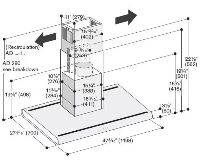 Gaggenau AI 280-120 представляет собой каминную вытяжку, которая устанавливается на потолке. Она обладает двумя режимами работы – отводом и циркуляцией. Оба метода прекрасно дополняют друг друга в борьбе с загрязнением воздуха дома. Для данной вытяжки характерна возможность бесшумной работы и три скорости. Фильтр можно мыть в посудомоечной машине.