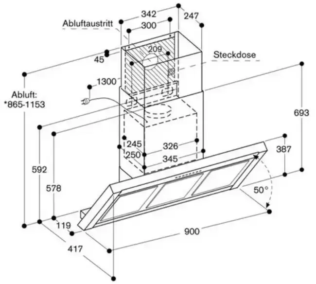 | Тип вытяжки | Наклонная | |