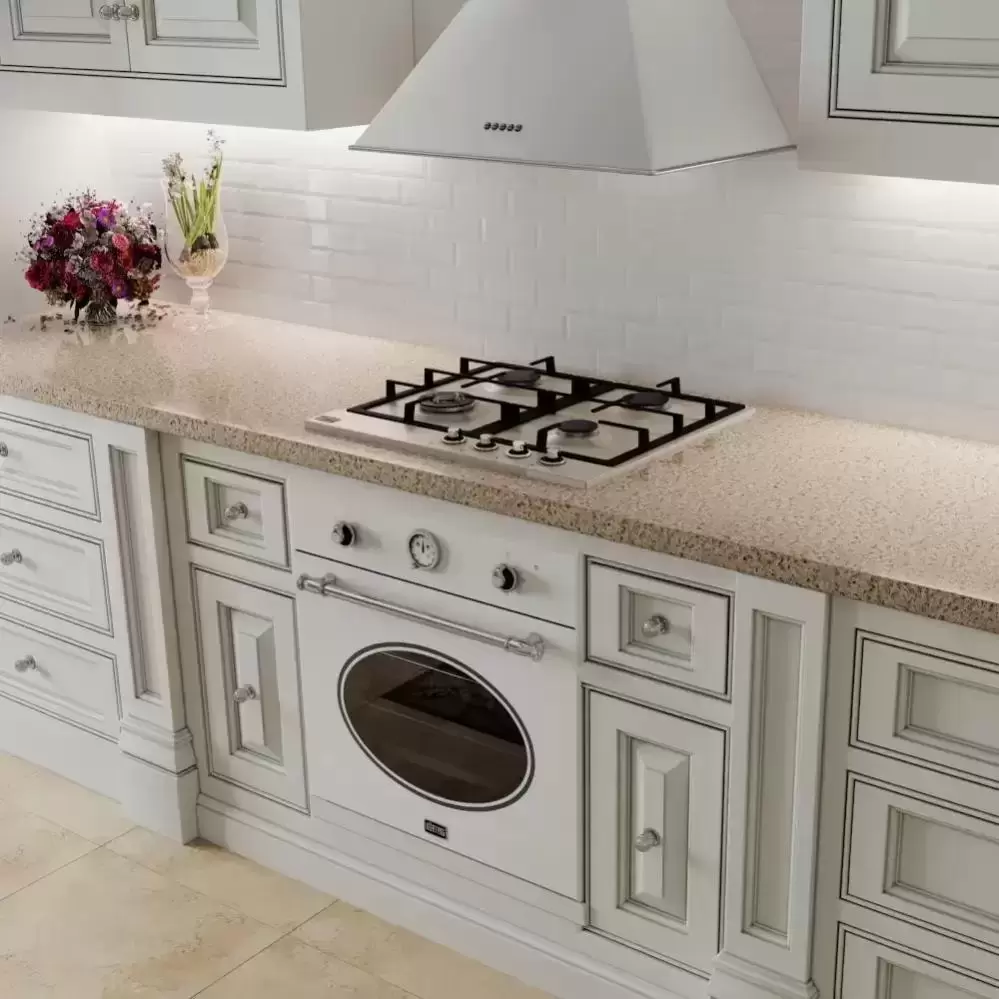 Корпус вытяжки похож на купол, что не только выглядит стильно, но и укрепляет всю конструкцию. Обратите внимание на цветовые сочетания модели Korting KHC 6648 RSI, чтобы органично вписать ее в свою квартиру. Оттенок корпуса: античный белый. Благодаря лампочкам, которые расположены на нем, можно освещать плиту и столешницу рядом, чтобы готовить было еще проще и приятнее.