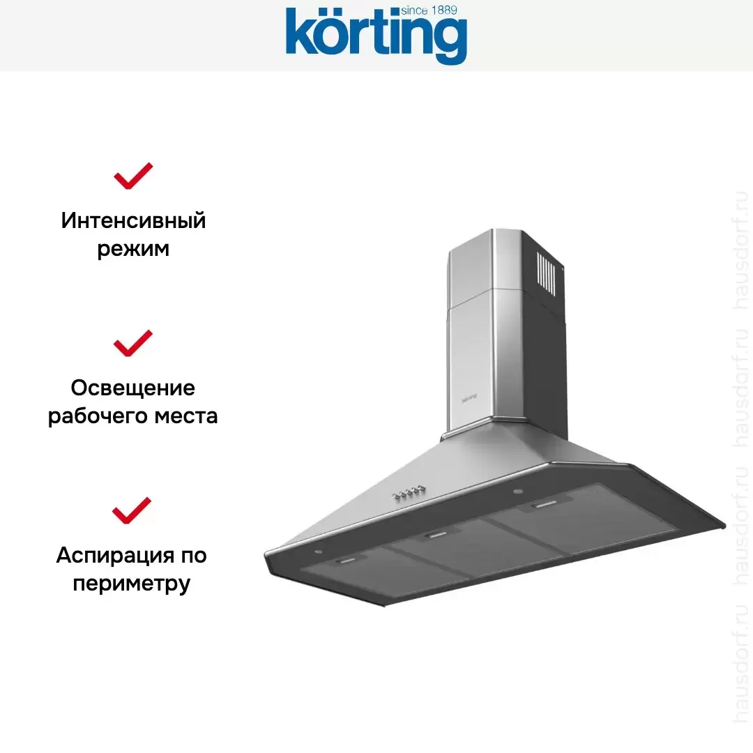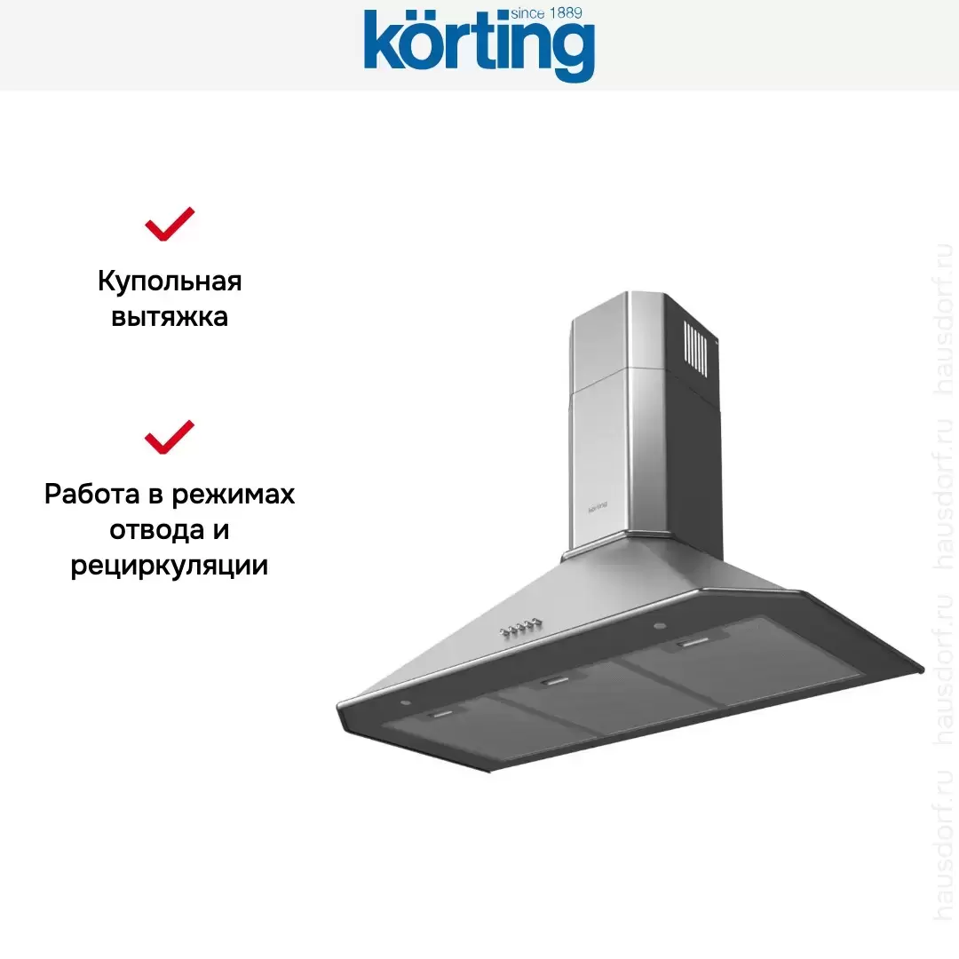 Вытяжка Korting KHC 9839 X представлена в размере 90 сантиметров. Она обеспечивает быстрое и эффективное устранение запахов и испарений из кухни. Габариты модели позволяют установить ее над варочными панелями и плитами на пять конфорок. Устройство представлено в классическом цвете нержавеющей стали, который гармонично сочетает как с другой бытовой техникой, так и разнообразными интерьерными решениями. Светодиодная подсветка не только дополняет образ модели, но обеспечивает равномерное освещение рабочей зоны. Вытяжка Кортинг KHC 9839 X может функционировать в режиме циркуляции.