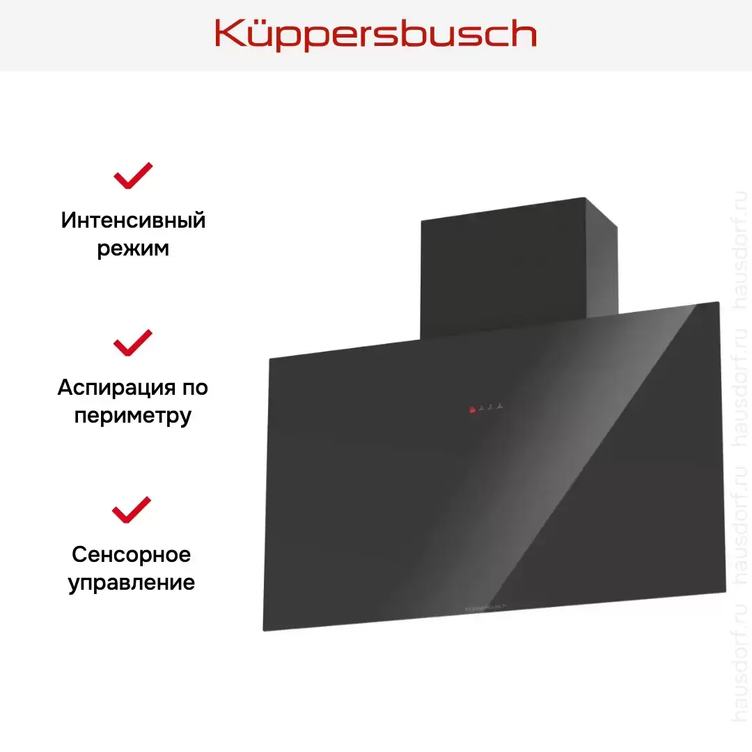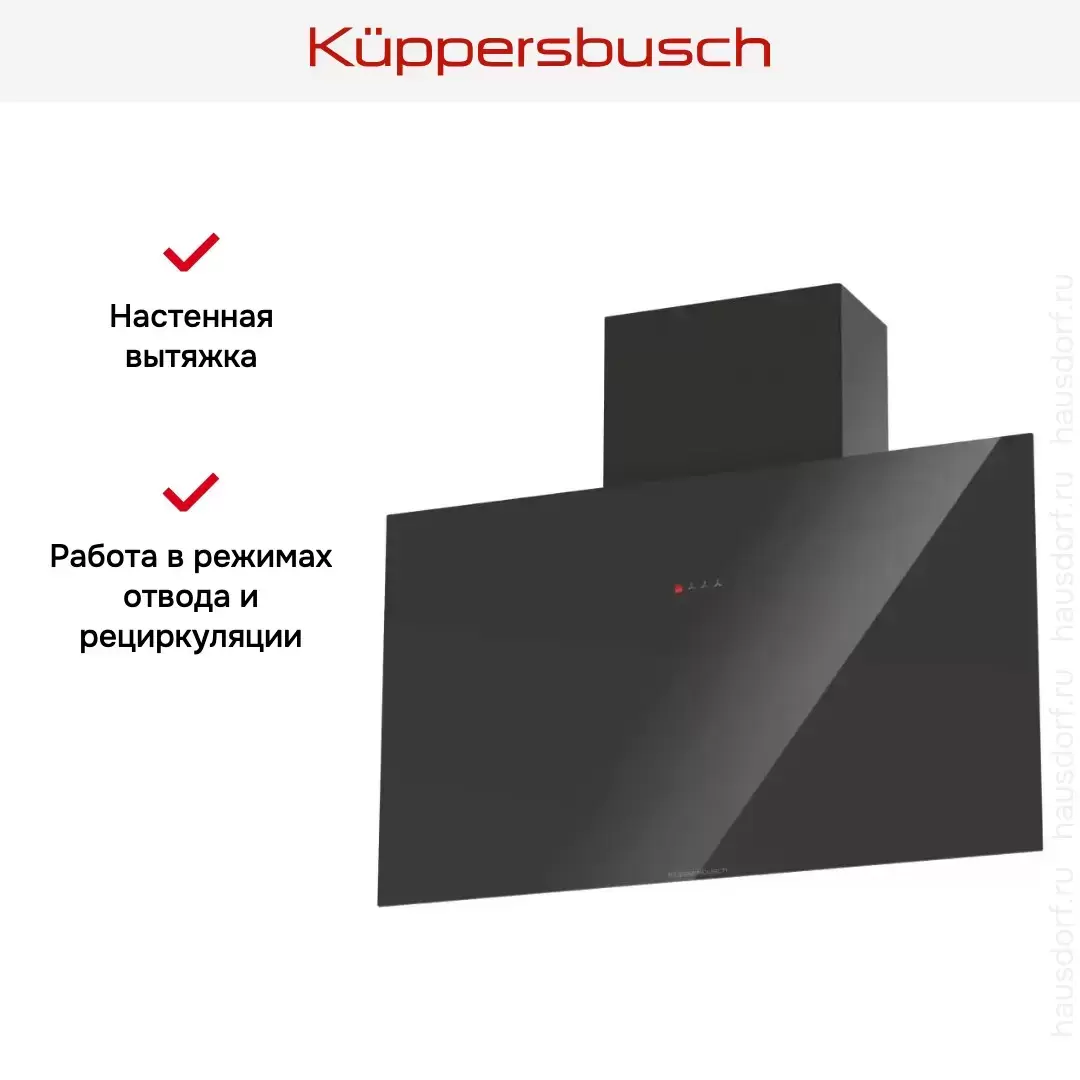 Kuppersbusch DW 8540.0 S — настенная вытяжка с большим вертикальным экраном шириной 80 см и высотой 45 см. Максимальная производительность модели в интенсивном режиме составляет 570 м3/ч, что позволяет устанавливать ее в кухне достаточно большой площади. Черный стеклянный экран подойдет для интерьеров в современном стиле. Технология аспирации по периметру гарантирует лучший захват загрязненного воздуха. Прибор может работать в режиме отвода воздуха с присоединением к системе вентиляции и режиме рециркуляции. В комплект входит металлический многоразовый жироулавливающий фильтр с индикацией заполнения. Для управления устройством предназначены сенсорные кнопки и цифровой дисплей на фронтальной части.