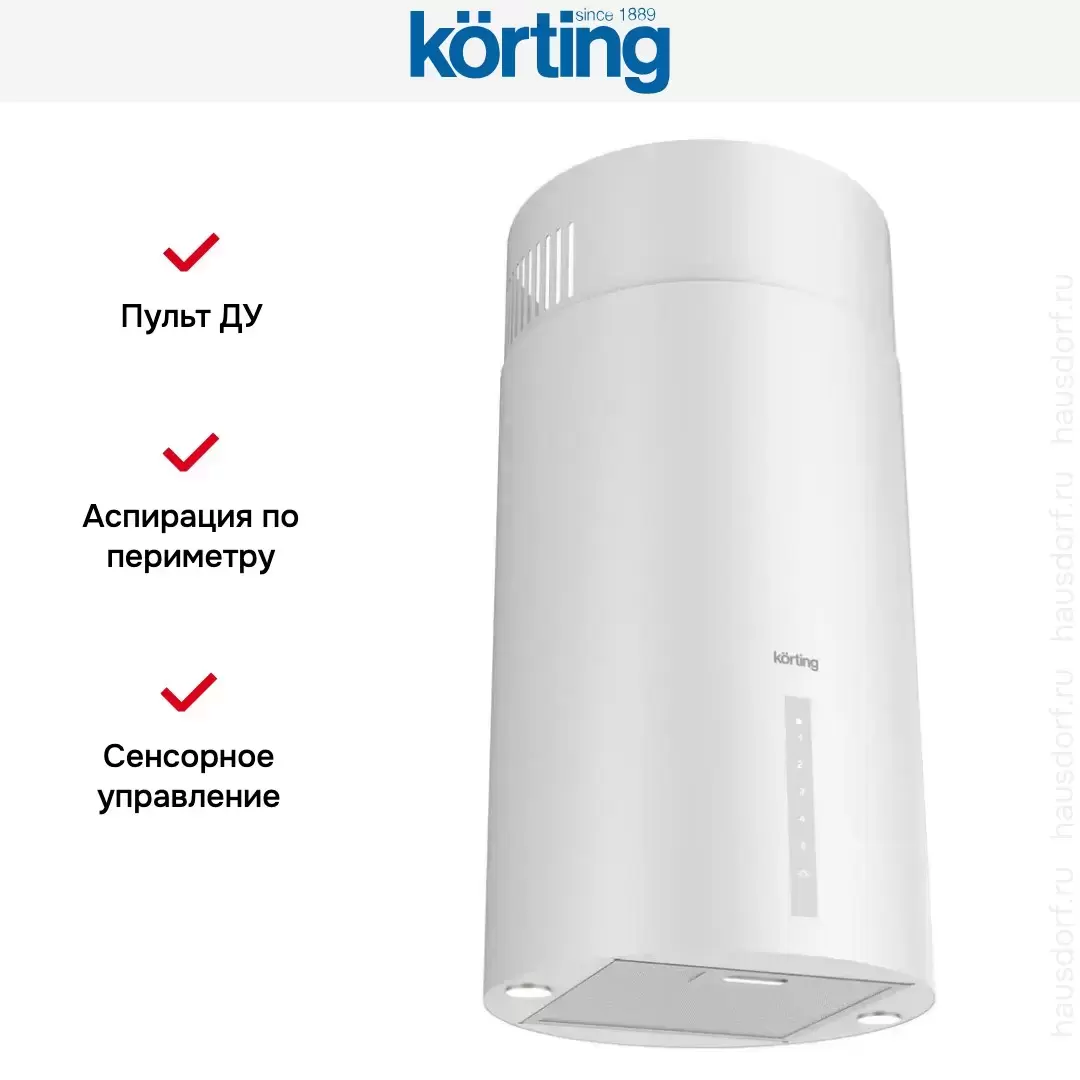 Вытяжка Korting KHA 39970 W Cylinder островная модель от известного производителя техники. Устройство устанавливается на потолок и отличается расширенными возможностями по расположению. Например, данный тип изделия актуален для больших кухонь с выделенным островом. Управление представлено сенсорной панелью на корпусе, а также пультом ДУ, что повышает уровень комфорта. В основании — жироулавливающий фильтр. Металлическая многослойная сетка задерживает крупные частички загрязнений, тем самым защищая внутренние детали от их скопления. Вытяжка Кортинг KHA 39970 W Cylinder дополнена светодиодным освещением.